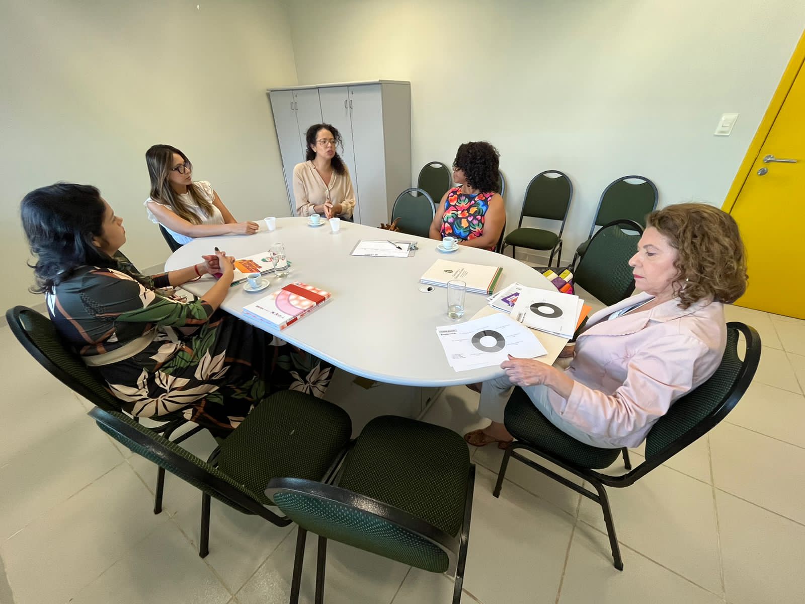 O primeiro encontro foi na Casa da Mulher Brasileira e serviu para observar o funcionamento desse equipamento tão importante para as mulheres. A Chefe de Gabinete, Aldinha Sena, a Superintendente de Prevenção e Enfrentamento à Violência, Camilla Batista, a Secretária Nacional de Enfrentamento à Violência contra a Mulher do Ministério das Mulheres, Denise Motta, a Diretora de Enfrentamento à Violência contra a Mulher do Ministério das Mulheres, Aline Yamamoto e as Secretárias Executiva de Enfrentamento à Violência contra a Mulher e de Planejamento e Gestão Interna da Casa da Mulher Brasileira, Raquel Andrade e Glória Mattos, trocaram conhecimento e experiência durante a visita ao local.