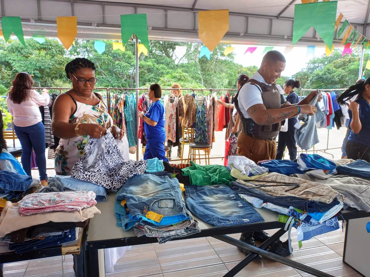“Achei um barato a ideia porque ajuda a todos os lados: tanto quem precisa de alimento na mesa, quanto quem quer renovar o guarda-roupa com pouco dinheiro”, opinou a técnica administrativa Soraya Oliveira. Integrante da equipe da Diretoria de Gestão da Qualidade da Superintendência de Atendimento ao Cidadao (SAC), Soraya chegou ao bazar com três quilos de alimento não-perecível e saiu com dois vestidos, uma calça e a determinação de voltar no dia seguinte com peças de casa, para colaborar com o projeto.