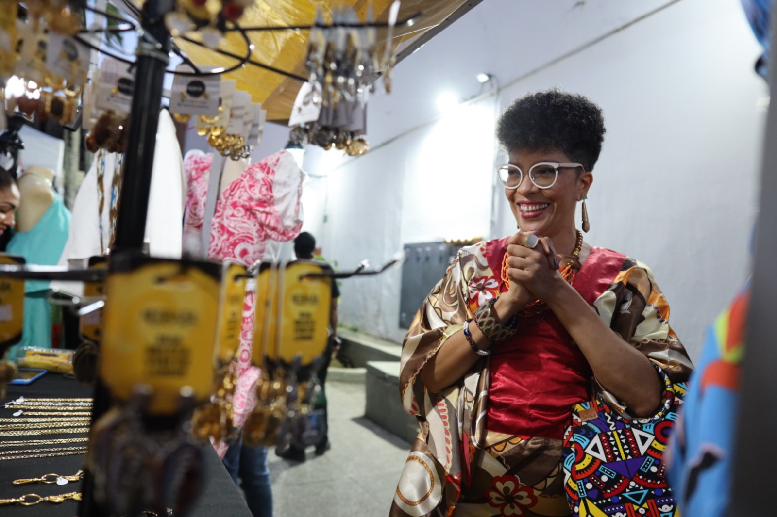 A Feira Bahia Afro promove o empreendedorismo negro dentro da programação do festival. Bijuterias, bolsas, turbantes, óculos, artesanatos diversos e um espaço de autocuidado, com massagem, manicure e outros serviços estão sendo oferecidos. “Eu trouxe peças contemporâneas inspiradas na África, na questão racial e na autoafirmação de mulheres e homens pretos que no dia a dia não encontram roupas que traduzam a sua identidade. O festival é incrível, tem gente incrível, pessoas de todo lugar, pessoas de Salvador inteiro, passeando, vendo nossas coisas e é uma oportunidade de mostrar o que a gente tem”, pontuou a estilista Gabriele Olavo, uma das expositoras.