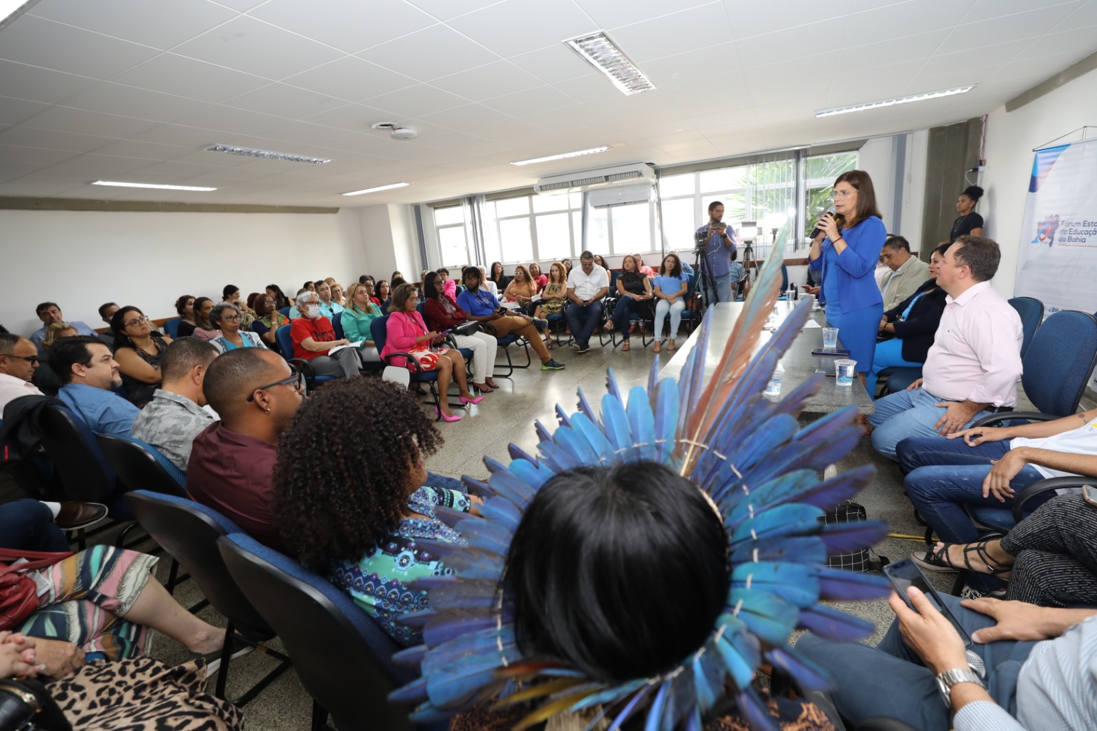 O Fórum Estadual de Educação da Bahia (FEE-BA), em parceria com a Secretaria da Educação do Estado (SEC), lançou, nesta terça-feira (15), no Instituto Anísio Teixeira (IAT), em Salvador, a edição extraordinária da Conferência de Educação da Bahia 2023 (COEED-BA 2023), com o tema "Plano Nacional de Educação 2024-2034: Política de Estado, Direito à Educação, Diversidade e Justiça Socioambiental na Terra da Liberdade". Devido à queda de energia registrada pela manhã, o encontro, que estava programado para acontecer de forma híbrida, foi realizado presencialmente e gravado para ser transmitido pelo Canal do IAT no Youtube.