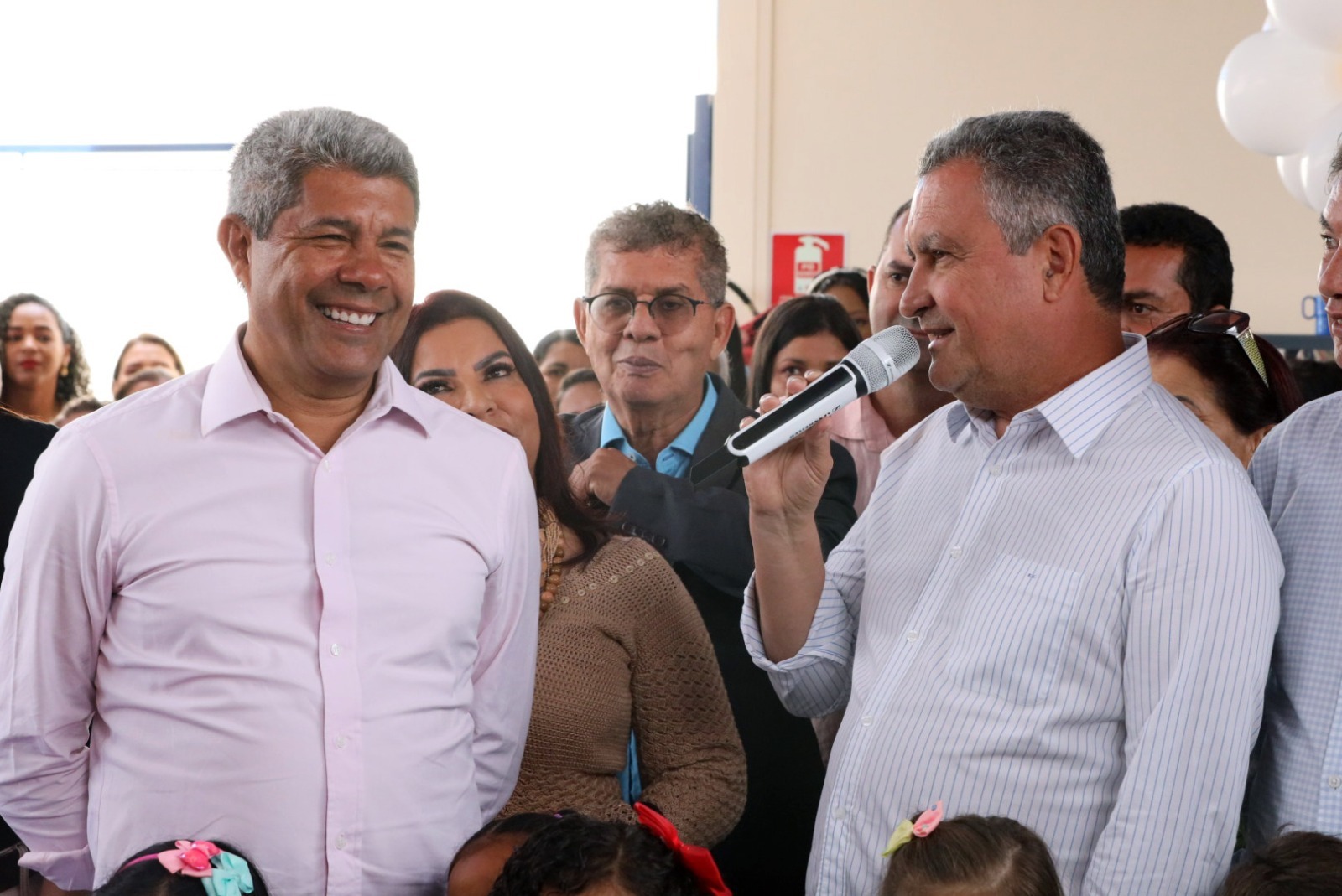 Jerônimo, Rui Costa, e o prefeito do município, Oberdan Rocha, participaram ainda da inauguração da Creche Dona Maria Luzia Costa do Santos, fruto de um convênio entre o Ministério da Educação e a Prefeitura. De acordo com Rui Costa, essa entrega foi viabilizada por meio de liberação de recursos federais. “Em apenas seis meses, o Governo Federal já passou os recursos, a Prefeitura recebeu e estamos aqui inaugurando, antes [na gestão anterior] nem passava o recurso, nem deixava o Estado colocar, mas hoje graças a Deus nós estamos entregando com o prefeito essa belíssima creche, além da escola estadual, ou seja, a Educação é o que transforma a vida das pessoas, transforma a vida das cidades, do estado”, resumiu o ministro.