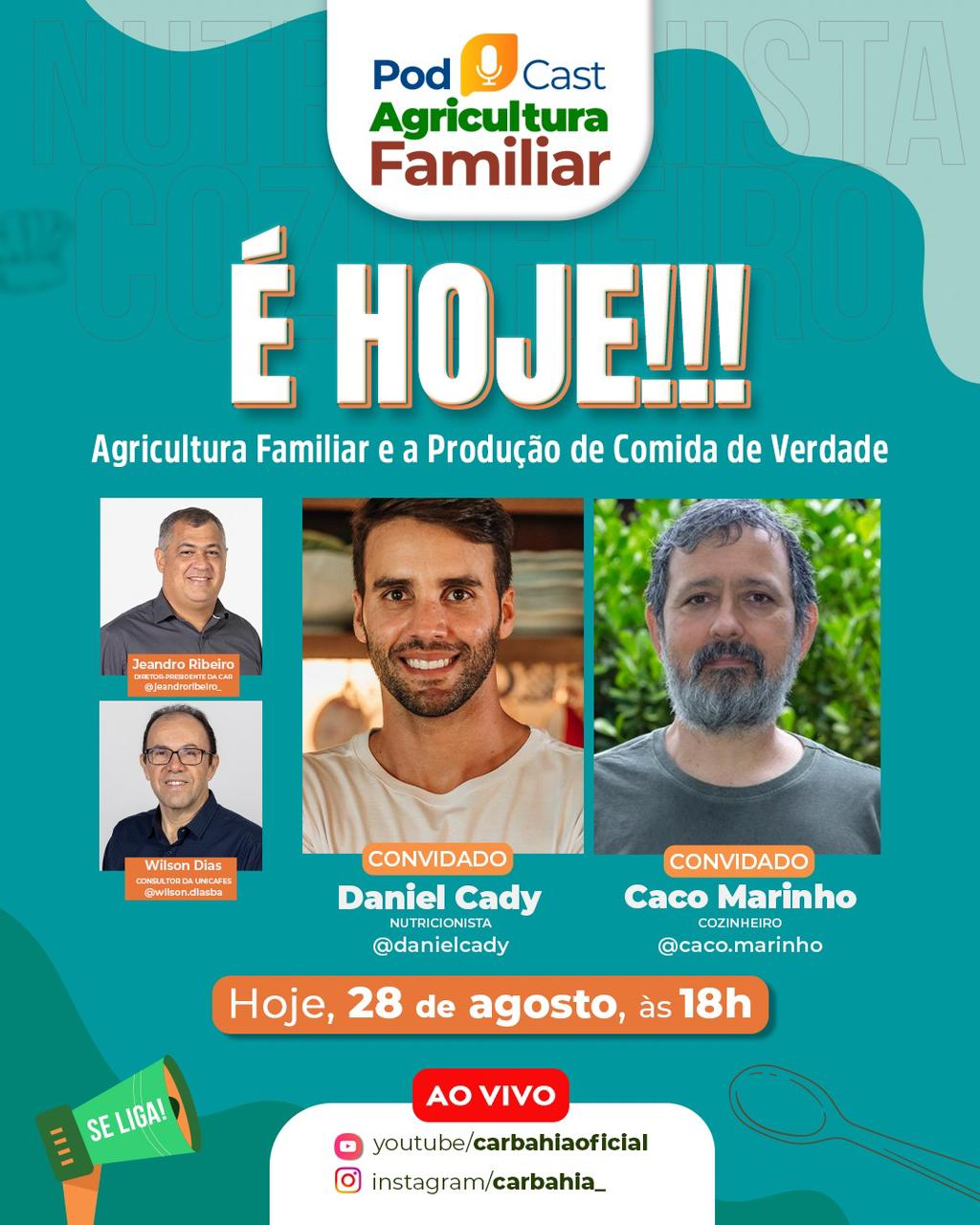 O nutricionista e empresário Daniel Cady é um dos convidados do Podcast Agricultura Familiar, que vai ao ar às 18h, desta segunda-feira (28/08), no Canal do Youtube CARBahia, da Companhia de Desenvolvimento e Ação Regional (CAR) e pelo perfil da empresa no Instagram @carbahia_.