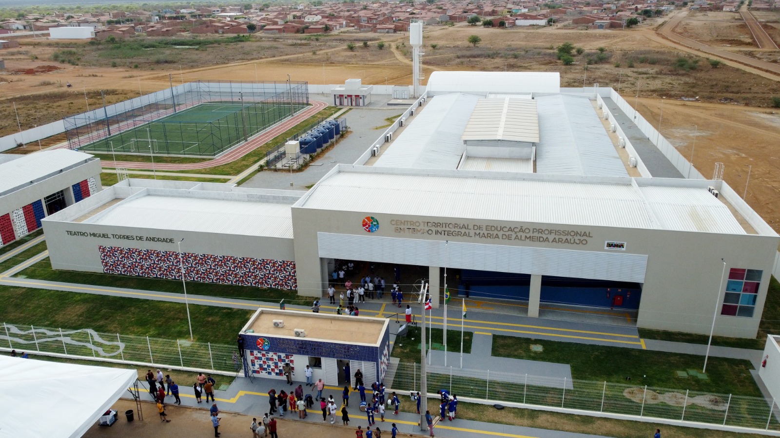 A obra do Centro Territorial de Educação Profissional em Tempo Integral Maria de Almeida Araújo é resultado de parceria entre a Secretaria de Educação do Estado da Bahia (SEC) e a Companhia de Desenvolvimento Urbano do Estado da Bahia (Conder), representando um investimento de mais de R$ 21,7 milhões. A nova unidade de ensino da rede estadual conta com 14 salas de aula, biblioteca, três laboratórios para atividades de Biologia/Química, Física/Matemática e Informática, sala de dança, teatro com capacidade para 200 espectadores, e restaurante estudantil, com 200 lugares. O equipamento ainda dispõe de vestiários, quadra poliesportiva coberta, campo de futebol society com pista de atletismo, além de horta escolar.