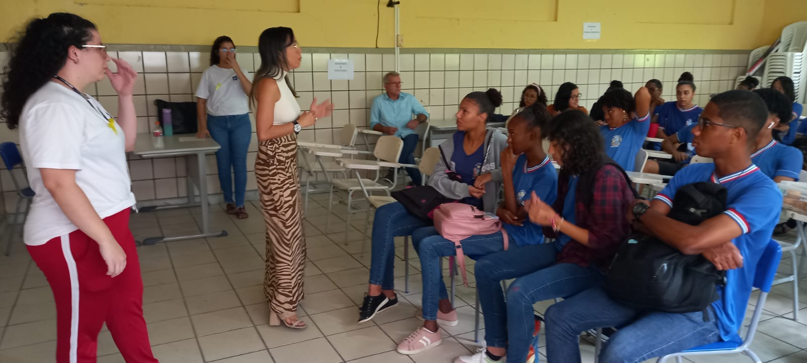 Os estudantes do Colégio Estadual Vale dos Lagos, na capital baiana, participaram, nesta quinta-feira (21), de uma palestra com o tema "Impacto do uso do celular e das redes sociais na ansiedade". A atividade faz parte das campanhas do Setembro Amarelo, de prevenção ao suicídio, e do Setembro Verde, de luta pelos direitos das pessoas com deficiência, que envolvem uma série de ações nas escolas e são realizadas em parceria entre as secretarias estaduais da Educação, por meio do Programa de Atenção à Saúde e Valorização do Professor (PASVAP), e da Saúde (SESAB).