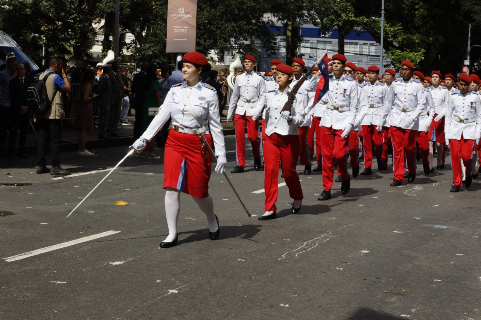 Os ex-alunos dos Colégios da Polícia Militar (CPM) e os 280 estudantes dos cinco CPMs de Salvador – dos bairros do Lobato, Dendezeiros, Ribeira, Luís Tarquínio e Cajazeiras – também se apresentaram representando suas escolas.