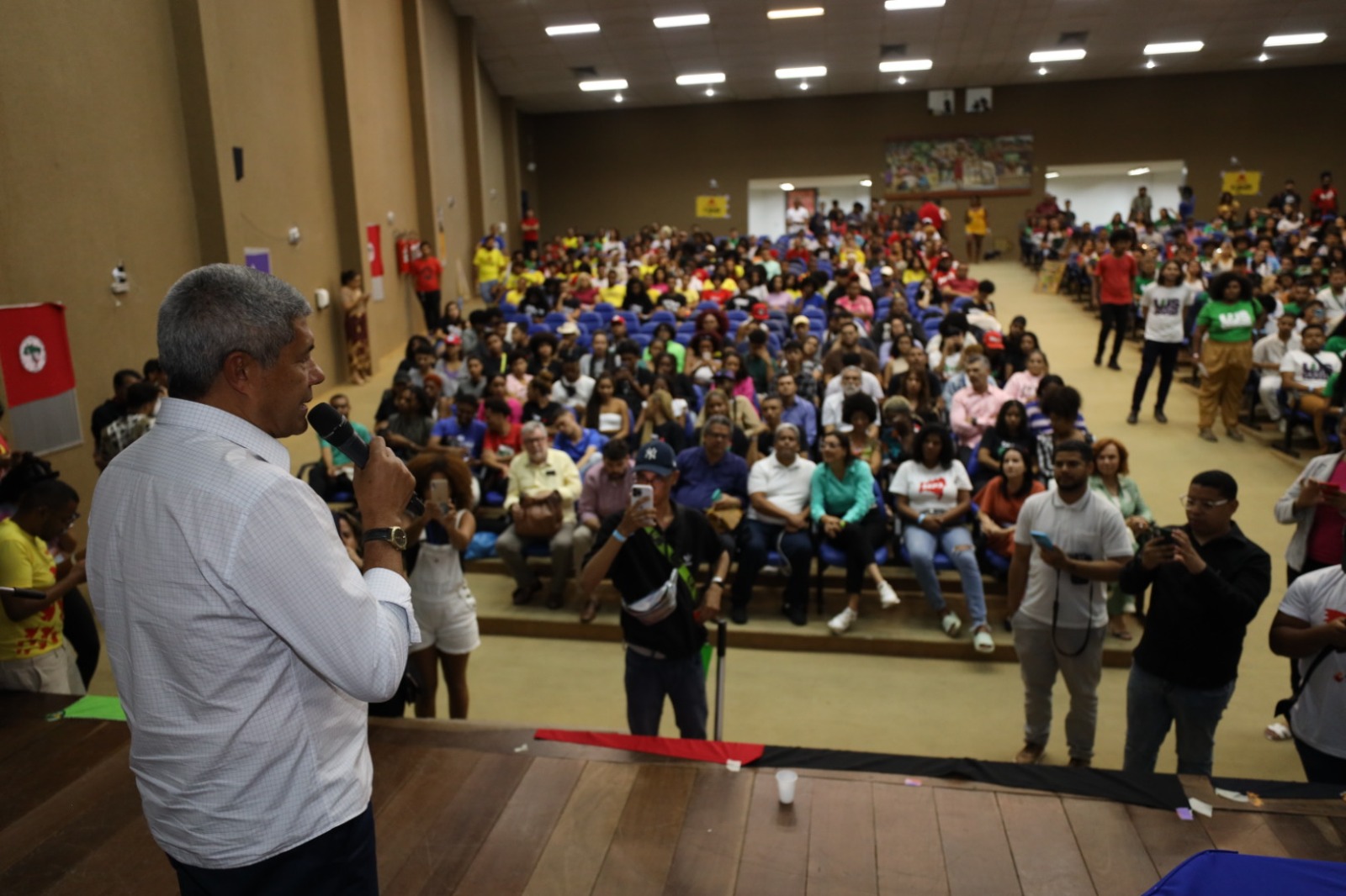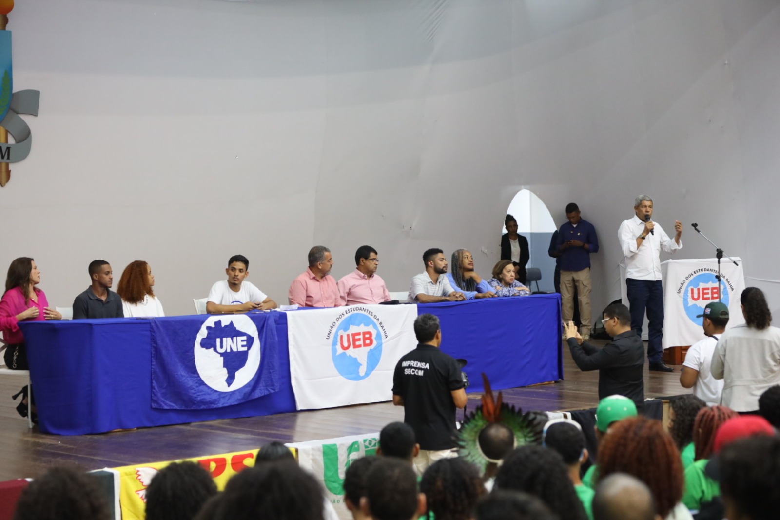 O segundo dia do 10º Congresso da União dos Estudantes da Bahia (10° CONUEB), que acontece na Universidade Estadual de Santa Cruz (Uesc), em Ilhéus, contou com a presença do governador Jerônimo Rodrigues. O evento, que tem como tema central “80 anos da UEB: uma história de luta, resistência e amor pela Bahia”, reúne cerca de 800 estudantes de universidades e institutos de educação superior de todo o estado, durante três dias.