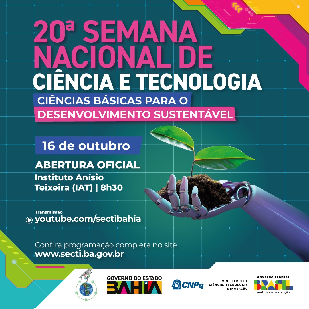 O secretário de Ciência, Tecnologia e Inovação, André Joazeiro, destaca a relevância da 20ª Semana Nacional da Ciência e Tecnologia. “É um evento que celebra o poder da pesquisa, da inovação e da descoberta em nosso país. Na SNCT, teremos a oportunidade de promover o diálogo sobre a importância do conhecimento científico e tecnológico, destacando como essas áreas oferecem soluções para os problemas do cotidiano. Queremos aproximar ainda mais a ciência da sociedade e mostrar ao público os trabalhos de cientistas e pesquisadores de toda a Bahia”.