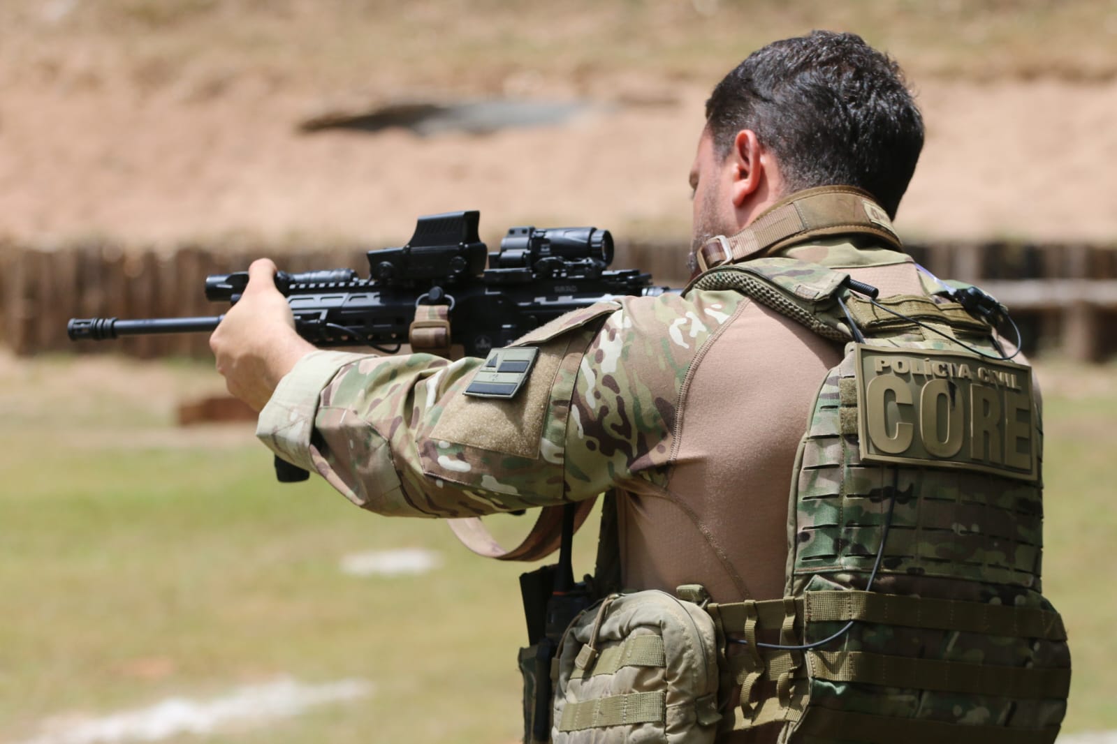 A entrega simbólica teve a participação do vice-governador do Estado, Geraldo Júnior, do secretário da Segurança Pública, Marcelo Werner, da delegada-geral da Polícia Civil, Heloísa Brito, e da diretora do Departamento de Polícia Técnica, Ana Cecília Bandeira, na manhã desta terça-feira (17), na sede da Coordenação de Operações e Recursos Especiais (Core). Duzentos e vinte e cinco fuzis da marca Iwi Arad, calibre 5,56, com mira holográfica, seguirão para a Core, outras coordenações e departamentos da PC, ajudando no reforço do combate às organizações criminosas. Já as outras 1.450 pistolas Glock calibre .40, adquiridas também com recursos do Fundo Estadual de Segurança Pública (Fesp), têm como destinos 1250 departamentosda PC e200 unidades do DPT.