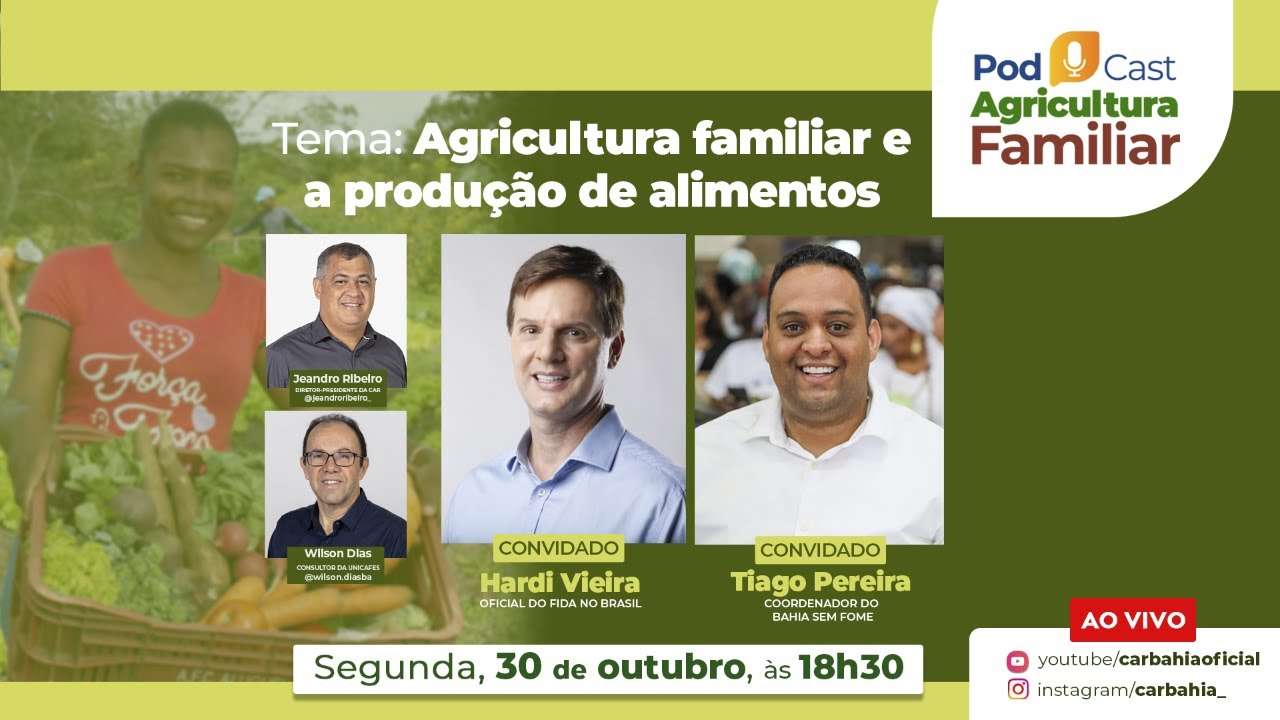 Nesta segunda-feira (30/10), o Podcast da Agricultura Familiar conversa com o Coordenador-Geral de Ações Estratégias de Combate à Fome, Tiago Pereira, e o Oficial de Programas do Fundo Internacional de Desenvolvimento Agrícola (@ifad_org), Hardi Vieira, sobre a relação intrínseca entre as produção da agricultura familiar e de alimentos para abastecer a mesa de milhares de baianos e baianas.