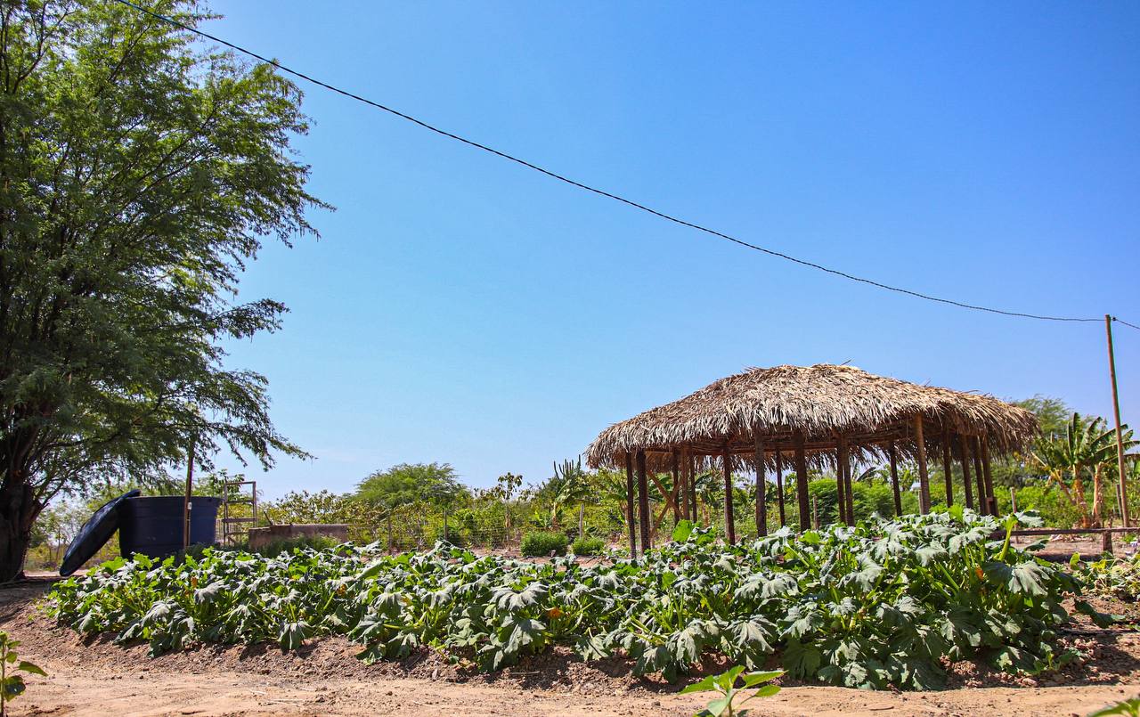 Além da mandala, há uma área de pastejo para as aves, que são criadas soltas no modelo caipira. No caso específico de Sobradinho, por conta do clima, o PAIS é irrigado durante todo o ano por gotejamento.