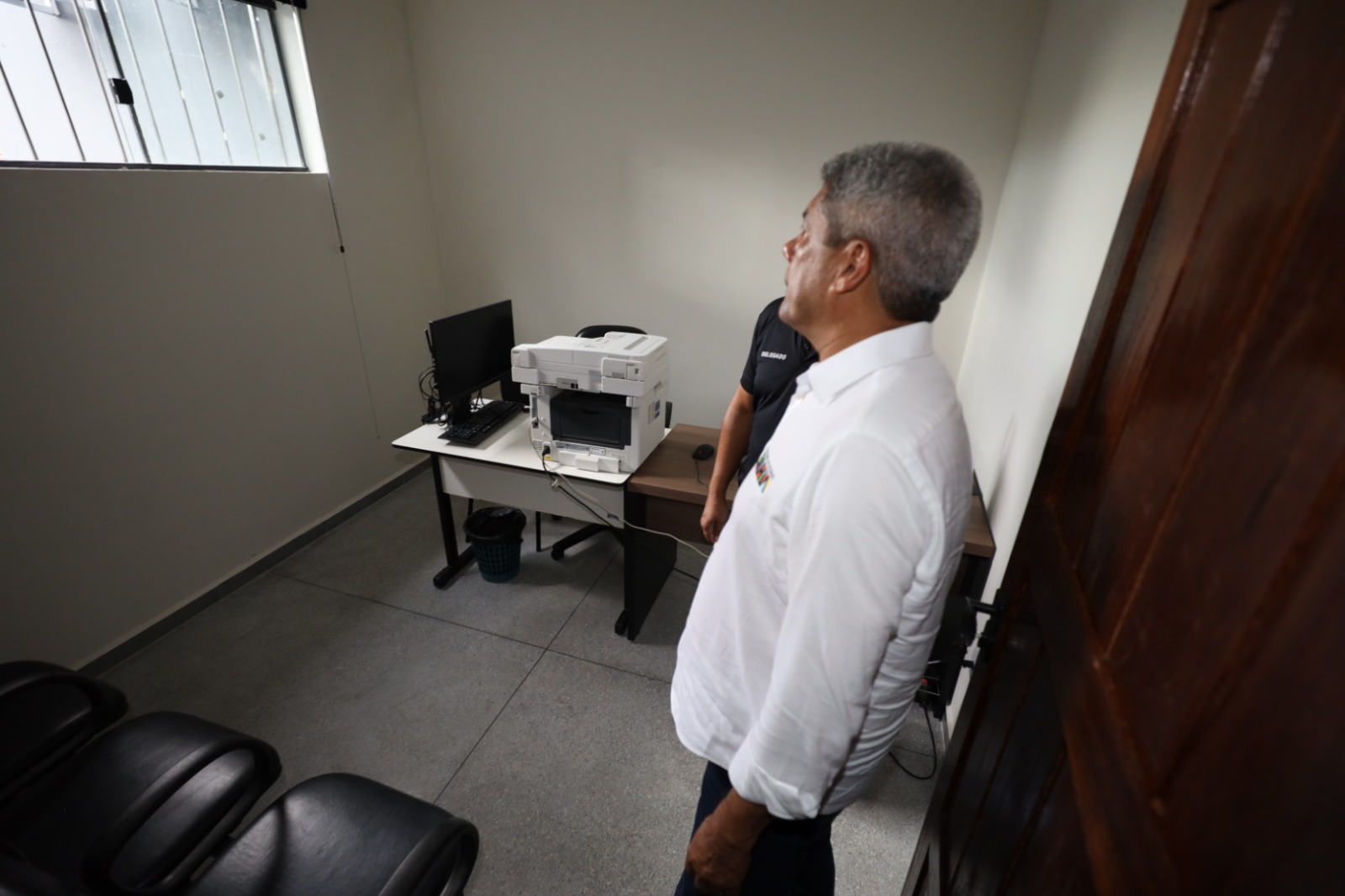 Acompanhado pelo prefeito Pedro Cardoso, o governador inaugurou a requalificação da delegacia que é ligada à 22ª Coordenadoria de Polícia do Interior (Coorpin), de Guanambi. A unidade de segurança agora conta com salas do delegado e escrivão, recepção, celas masculina e feminina, áreas de banho de sol, sala de arma e copa.