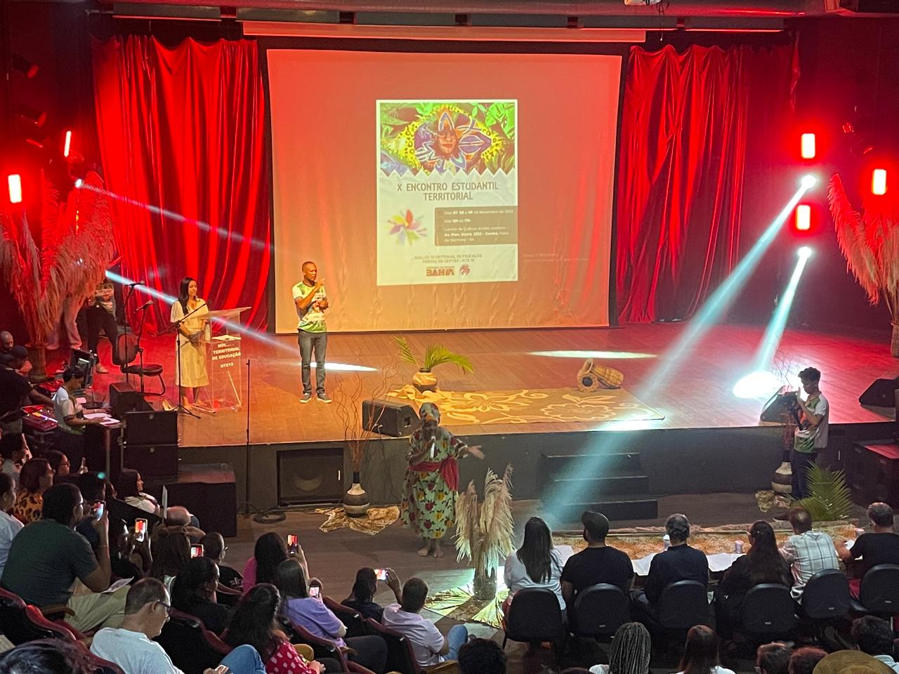 “Esses projetos são de fundamental importância na trajetória escolar dos alunos porque é uma forma de fundamentar tudo o que eles vêm aprendendo sobre expressões artísticas, desde a criação e desenvolvimento até a culminância. Através da cultura, eles têm uma melhor compreensão do que é estar no mundo e da sua vida em sociedade. Essas apresentações são bacanas porque eles se sentem parte do processo educacional, sendo protagonistas do que produzem, tendo como referência a nossa cultura brasileira, o que é essencial na sua escolarização”, explicou a coordenadora pedagógica do NTE de Feira de Santana, Isabela Santos da Silva, na abertura do X Encontro Estudantil Territorial.