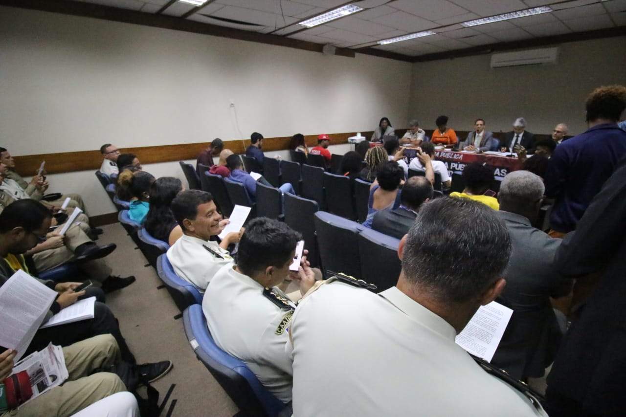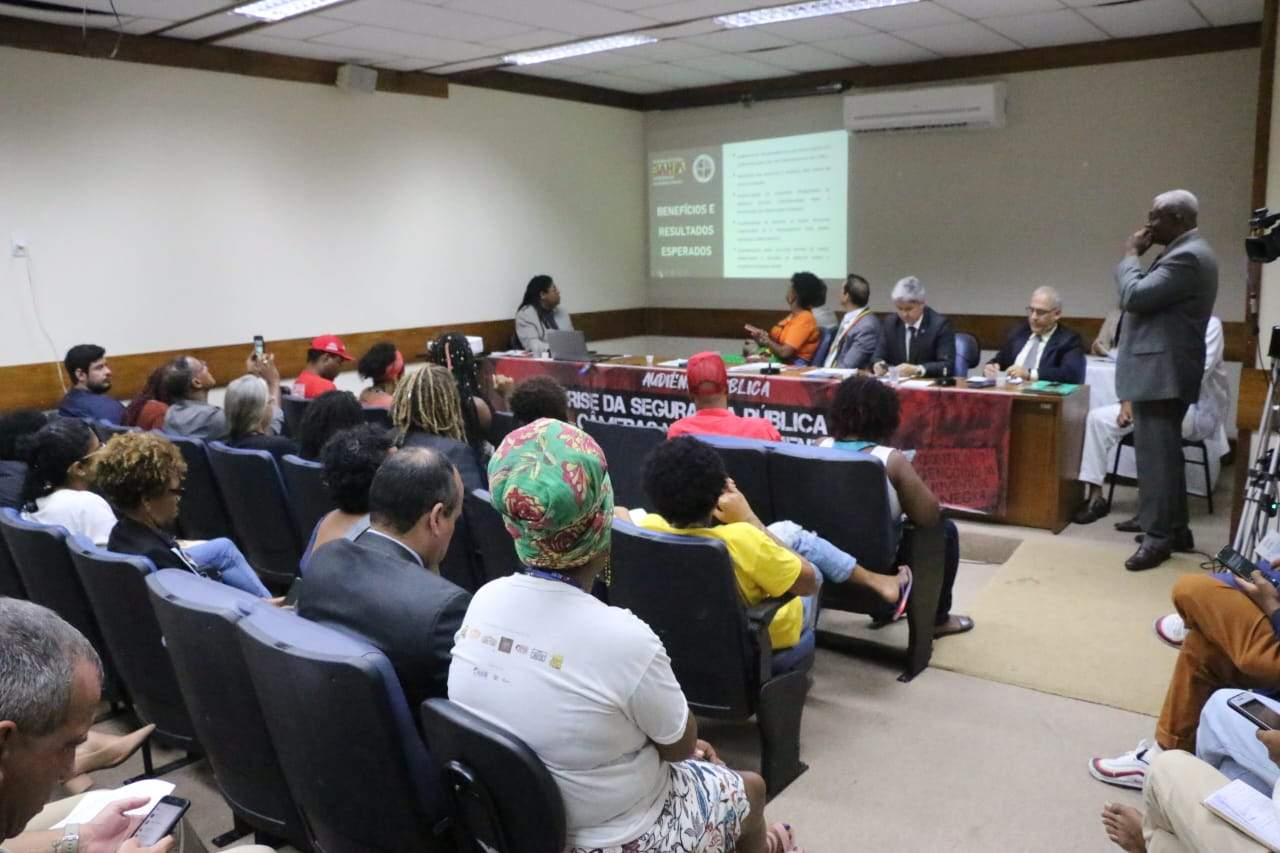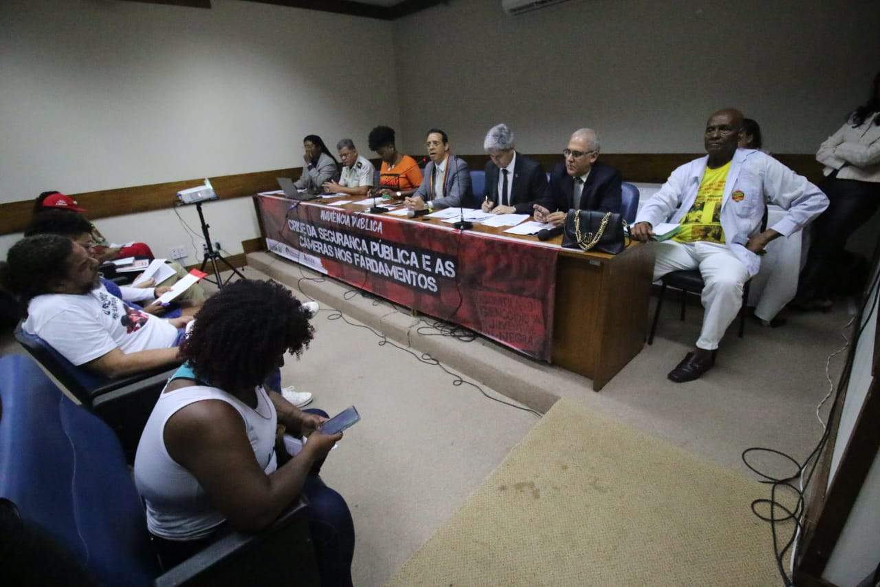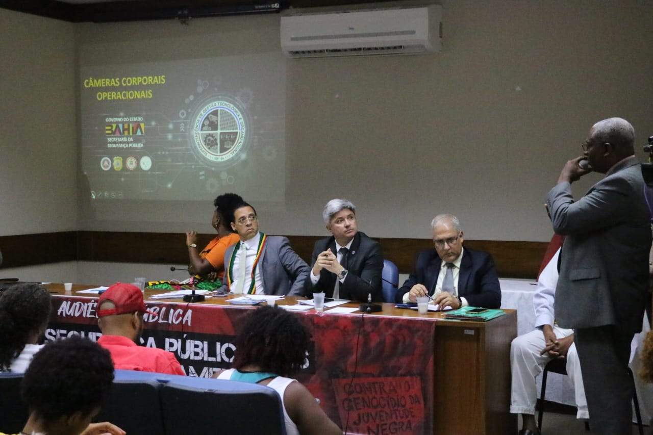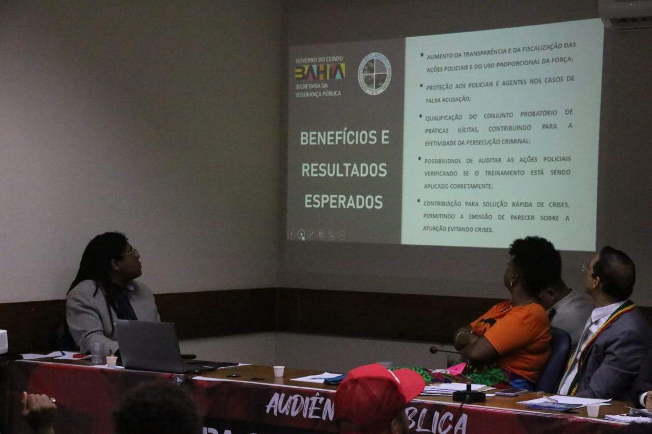 As etapas da licitação para a contratação das bodycams (câmeras corporais) foram apresentadas na manhã desta quarta-feira (8), na Assembleia Legislativa da Bahia (Alba), durante a audiência promovida pela Comissão de Direitos Humanos e Segurança Pública da Casa. O chefe de gabinete da Secretaria da Segurança Pública (SSP-BA), Nelson Pires Neto, apresentou as ações adotadas para redução da letalidade policial e, também, ouviu sugestões e críticas sobre o trabalho realizado pela pasta através das quatro forças de segurança.