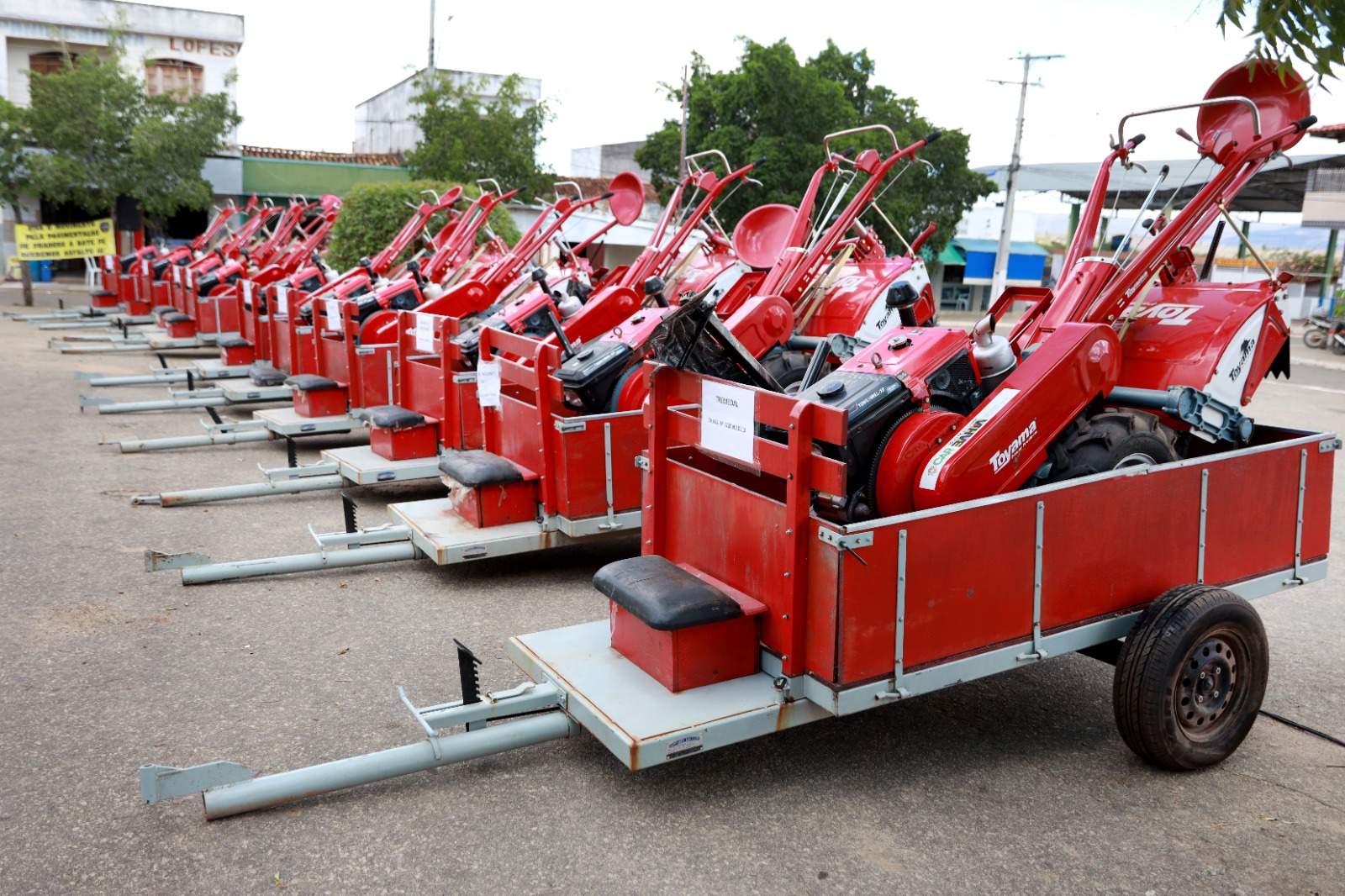 Na ocasião, foram entregues dez microtratores, uma retroescavadeira e 1.040 caixas d’água, visando impulsionar a produção da agricultura familiar, no distrito de Bate-Pé.