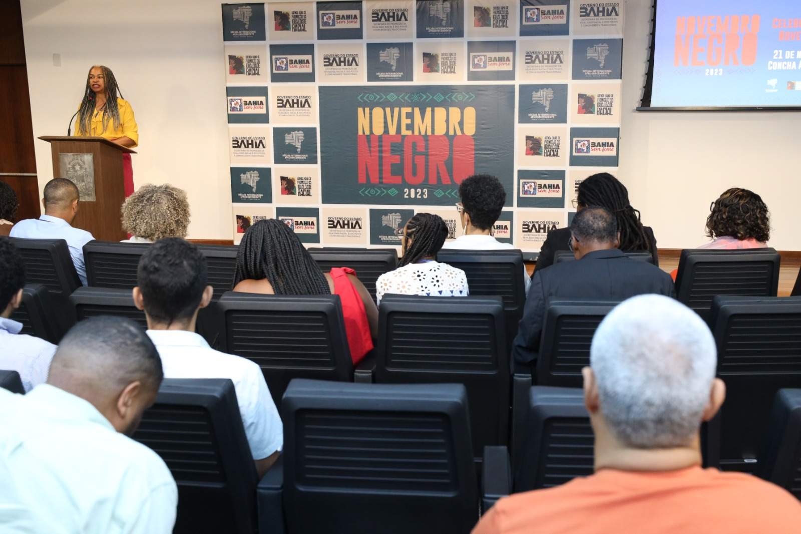 “Se enxergue, isso é racismo!”. Esse é o mote da campanha do Novembro Negro, lançada nesta terça-feira (14), pelo Governo do Estado, por meio da Secretaria de Promoção da Igualdade Racial e dos Povos e Comunidades Tradicionais (Sepromi). O mês marca a luta contra a discriminação racial e a afirmação da cultura do povo negro. O ato aconteceu no prédio da Governadoria, no Centro Administrativo, em Salvador. Na ocasião, foram divulgadas as atividades realizadas ou apoiadas pela gestão estadual que ainda irão acontecer ao longo deste mês.