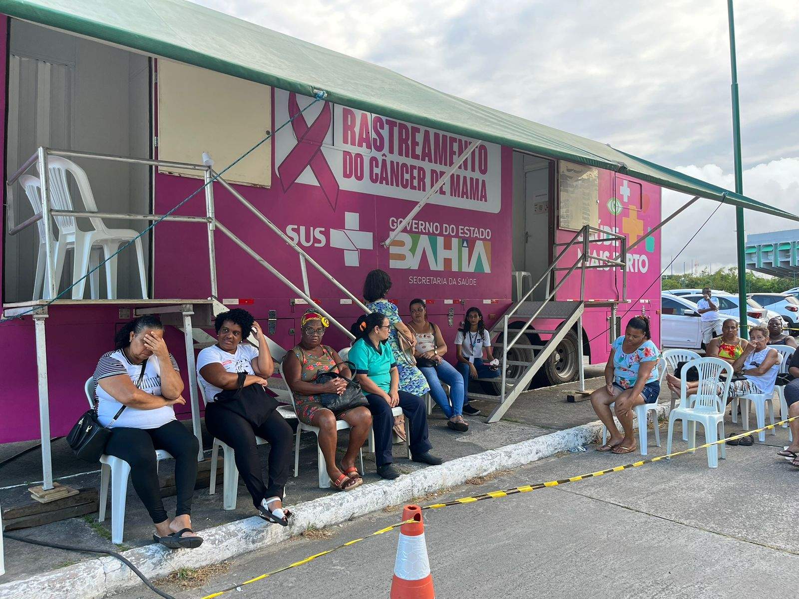 Como parte das ações do Programa Saúde Mais Perto, desenvolvido pela Secretaria da Saúde do Estado (Sesab), 300 mulheres estão sendo beneficiadas com exames gratuitos de mamografia, realizados na carreta instalada no estacionamento da Secretaria da Educação do Estado (SEC), no Centro Administrativo da Bahia (CAB). O atendimento, iniciado nesta segunda (6), segue até terça-feira (7) com foco na prevenção e no rastreamento do câncer de mama e acontece a partir de uma articulação com o Programa de Atenção à Saúde e Valorização do Professor (Pasvap), da SEC, integrando, ainda, a Campanha Outubro Rosa, promovida ao longo do mês.