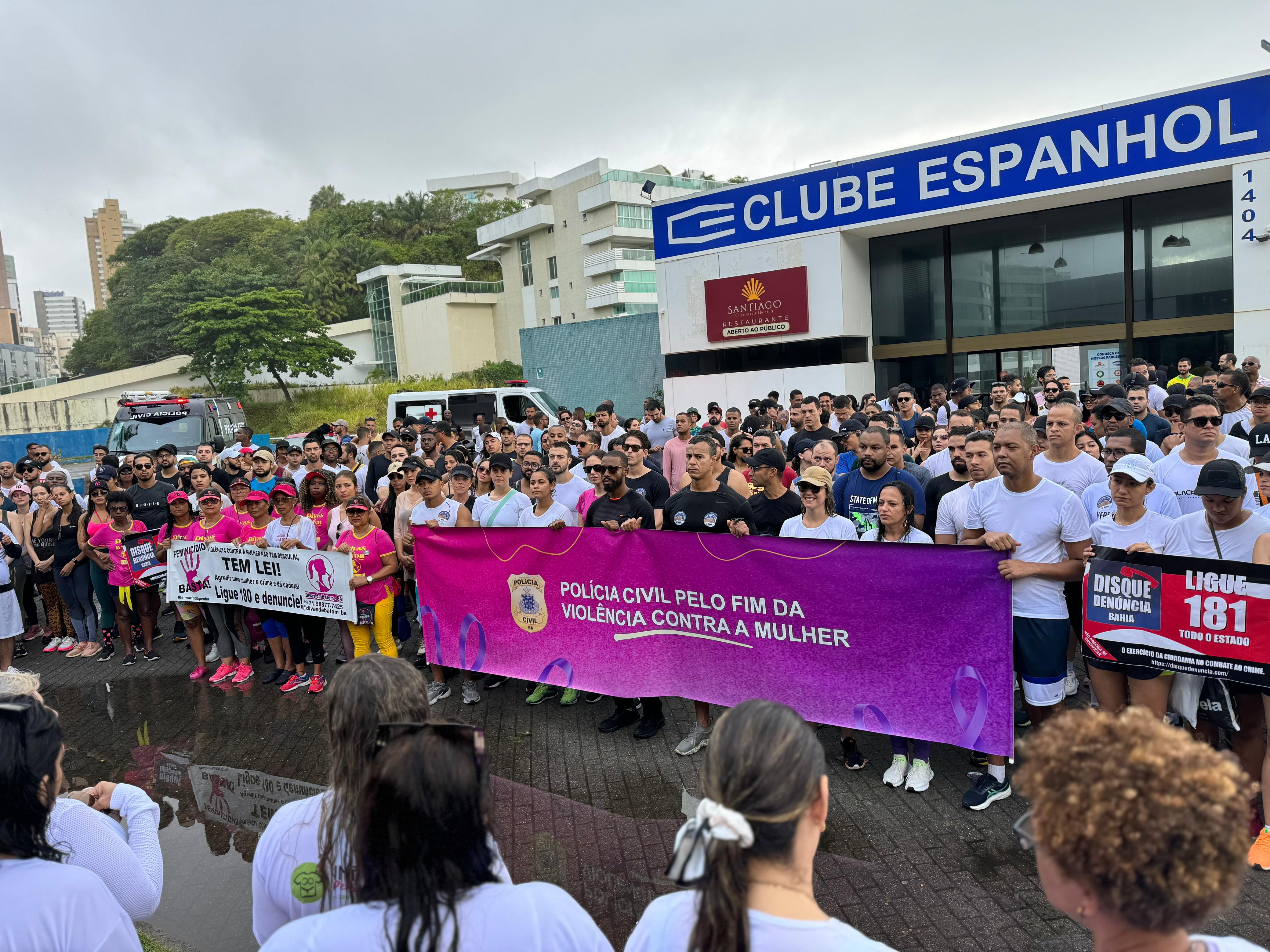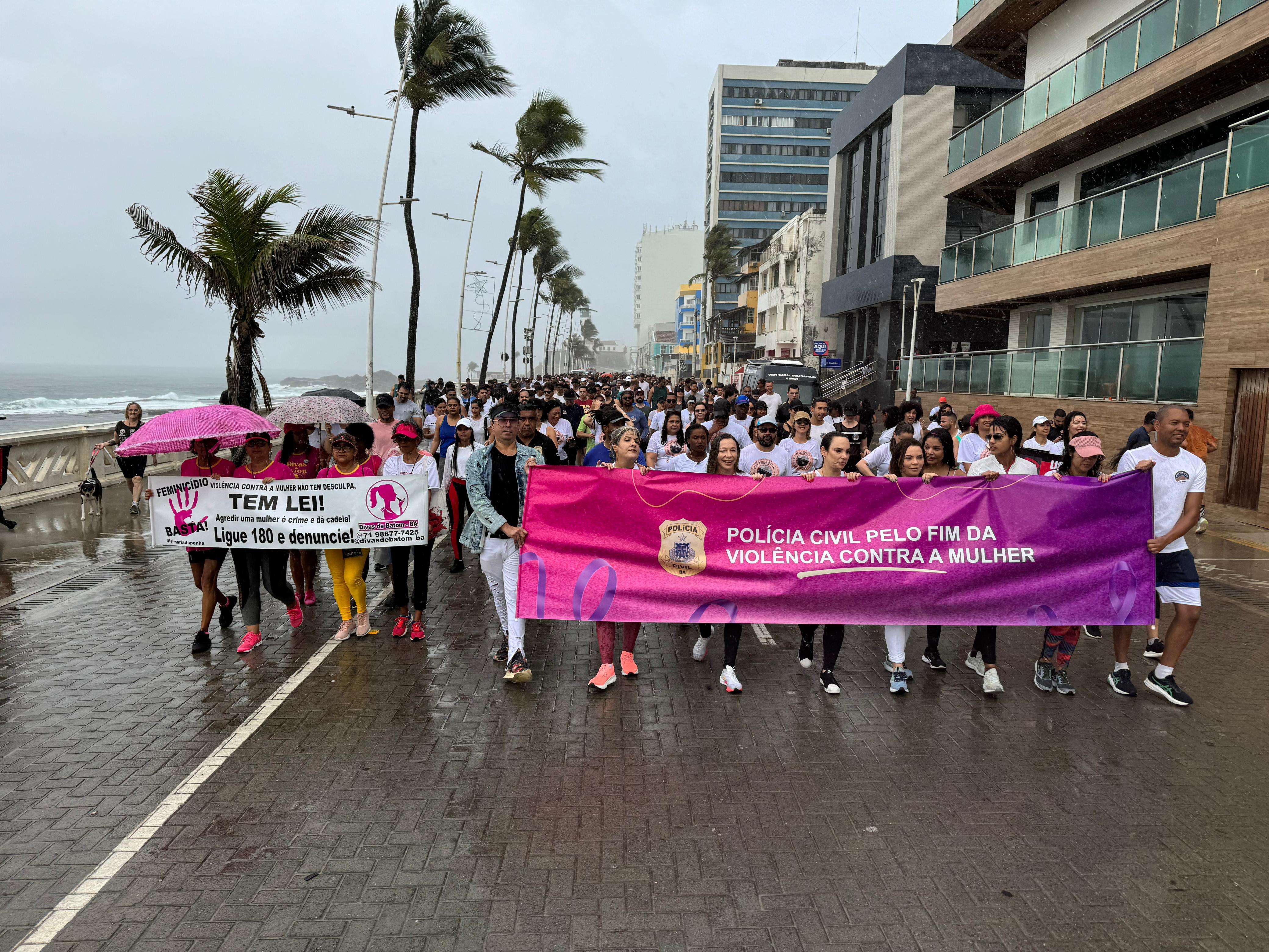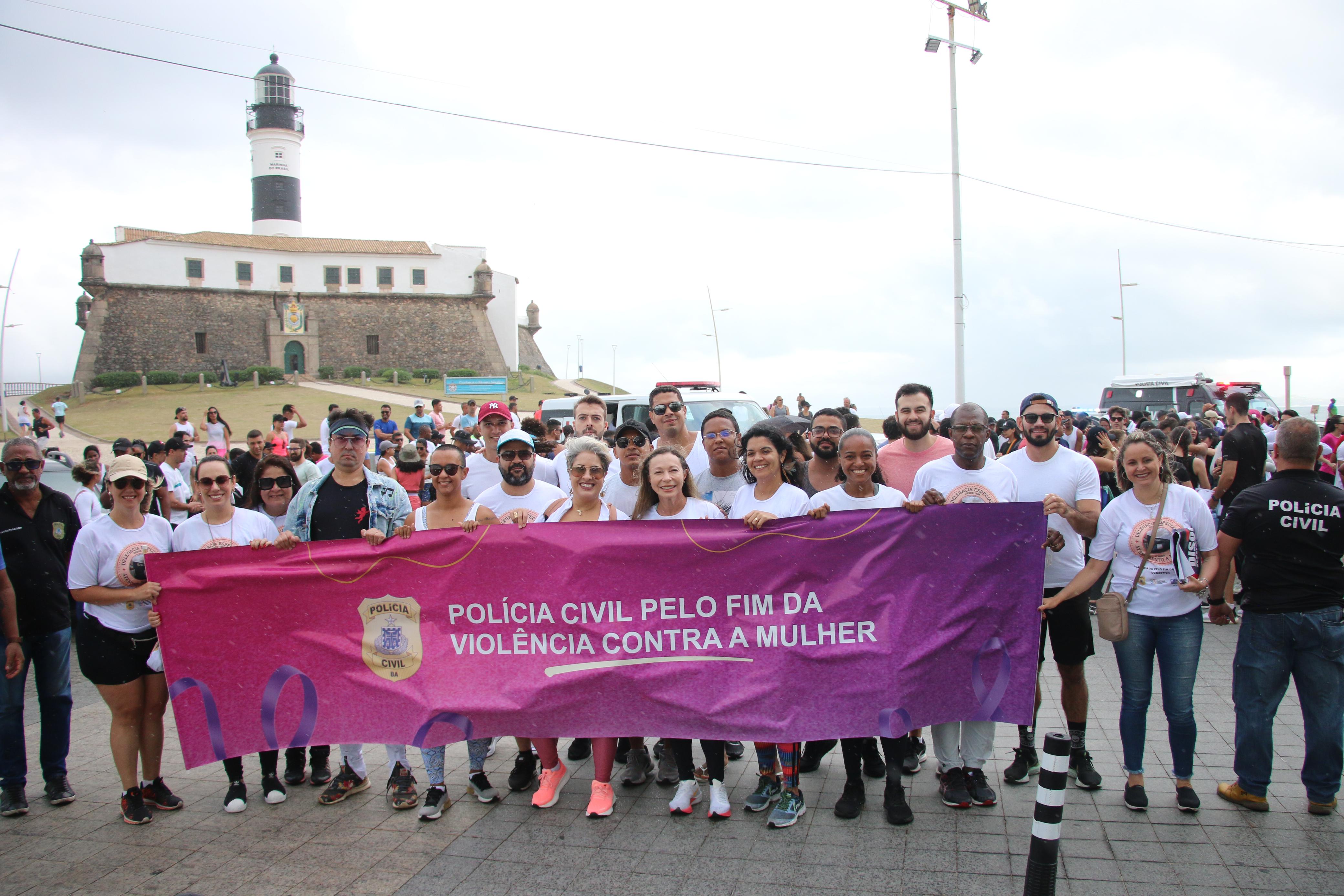 A Polícia Civil da Bahia, por meio do Departamento de Proteção à Mulher, Cidadania e Pessoas Vulneráveis (DPMCV), realizou a 1ª Caminhada pelo Fim da Violência Contra a Mulher, na Barra, no domingo (26). O evento, que tem o objetivo de mobilizar a sociedade para a conscientização sobre o enfrentamento à violência doméstica e familiar, teve a presença da delegada-geral Heloísa Campos de Brito e representantes de órgãos públicos integrantes da rede de proteção às mulheres, a exemplo do Ministério Público da Bahia (MP-BA) e da Secretaria Estadual de Política para Mulheres (SPM-BA).