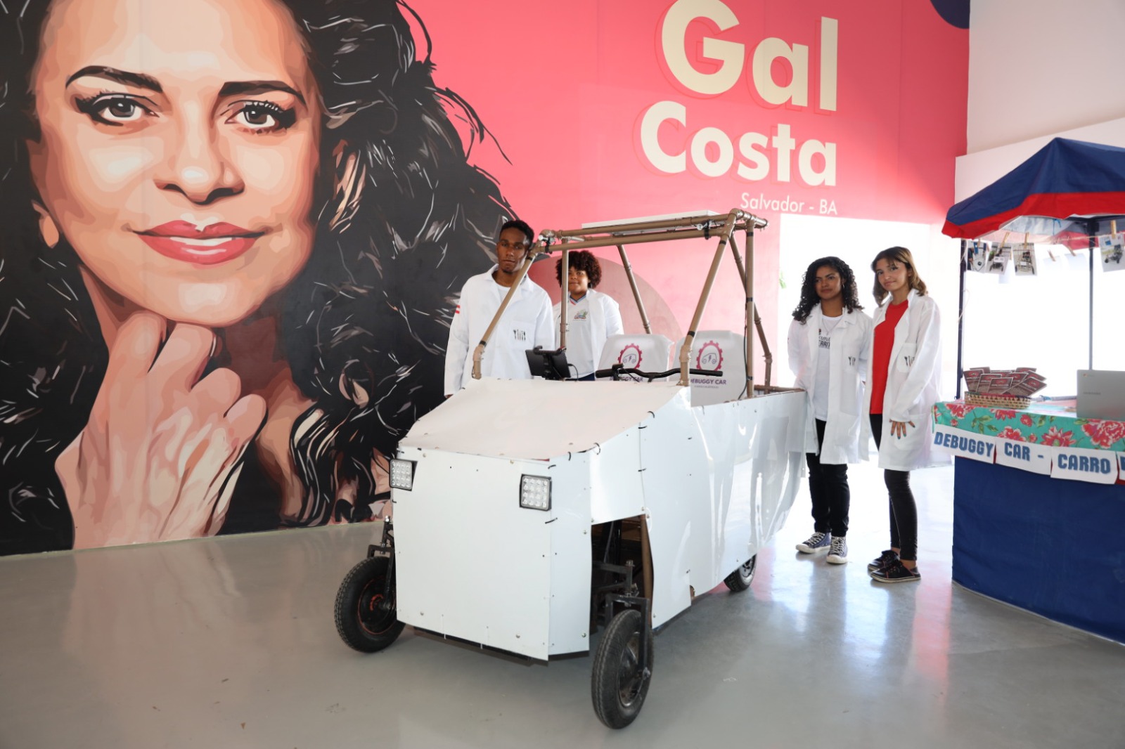 “A gente adicionou uma entrada para carregador, que é uma ótima opção para quem tiver com o celular descarregado na praia e precisar chamar um transporte por aplicativo, por exemplo. E também possui um roteador, que tem sua internet própria. Então, não vai ter problema de avisar a pai, a mãe quando forem à praia. E tem um cooler que refrigera sozinho. E o foco é para microempreendedores de praia, para dar visibilidade ao trabalho deles”, explicou Luana Victória Seixas, aluna do 2º ano do Ensino Médio.