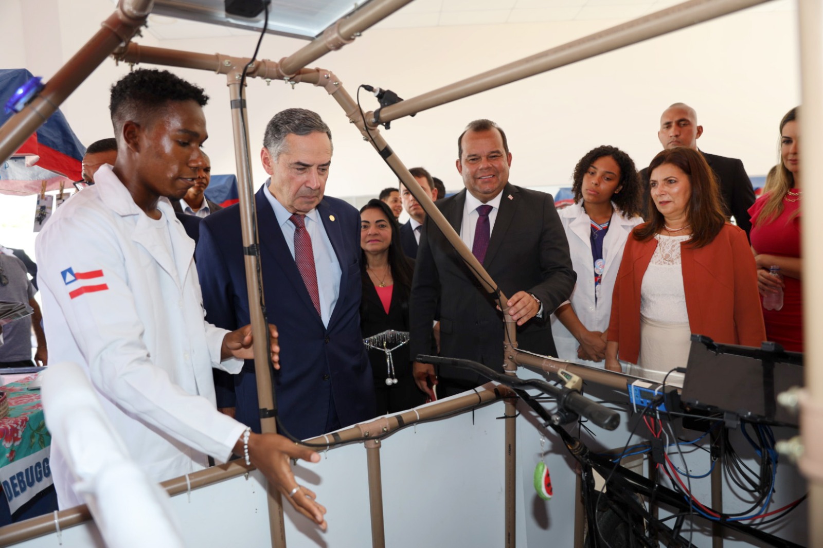 A secretária estadual de Educação, Adélia Pinheiro, também acompanhou a ação, ao lado da chefe de gabinete da Secretaria de Educação (SEC-BA), Rowenna Brito. “Para nós, é uma alegria receber o ministro Barroso aqui, em uma escola, apresentar para ele o nosso projeto de educação, apresentar para ele a revolução que a Bahia está fazendo na educação, com esses novos empreendimentos, com complexos de oportunidades. Ter o ministro conversando com os nossos estudantes, se aproximando, apresentando para eles uma visão de mundo e de um lugar, de uma experiência como a dele, para nós, é significativo. Foi possível ver o brilho nos olhos dos meninos, apresentando os projetos de ciências que eles desenvolvem, ao longo do ano, aqui”, contou Rowenna.