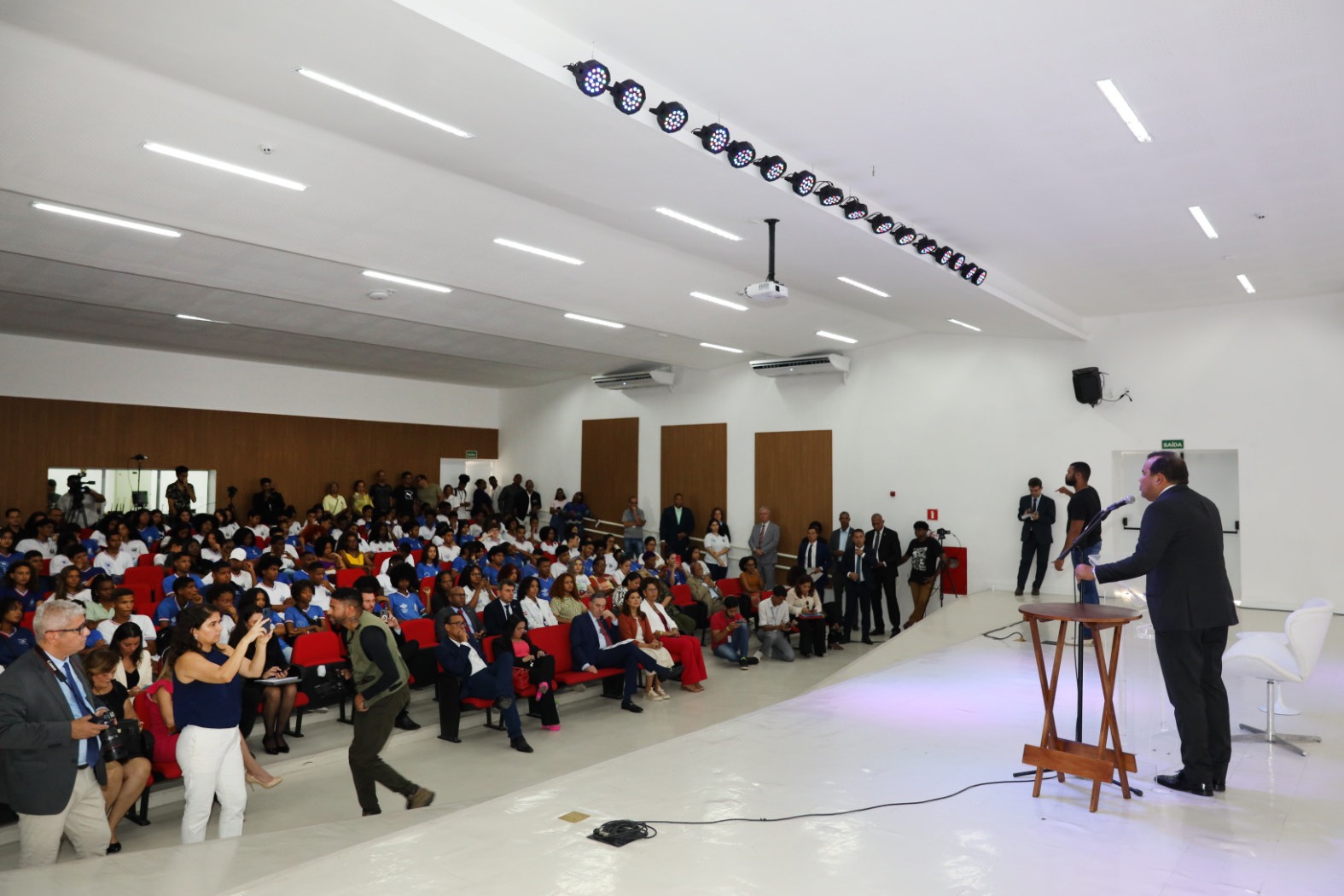 “Essa foi uma conversa motivacional com os estudantes do Ensino Médio para chamar a atenção para a importância dos valores, da integridade, do conhecimento. É preciso estar sintonizado com o mundo e com as grandes questões do mundo, proteção da democracia, deixar que a revolução tecnológica esteja em um trilho ético, pensar na mudança climática e pensar nos temas do Brasil que estão na Constituição. Não é uma visão política da vida, é uma visão institucional. Eu gosto de dizer que a democracia tem lugar para conservadores, liberais e progressistas. Nós precisamos de jovens íntegros e idealistas e, portanto, eu vim aqui para conversar sobre isso, sobre integridade, civilidade e idealismo”, declarou o ministro Barroso, que está na Bahia para participar do 17º Encontro Nacional do Poder Judiciário.