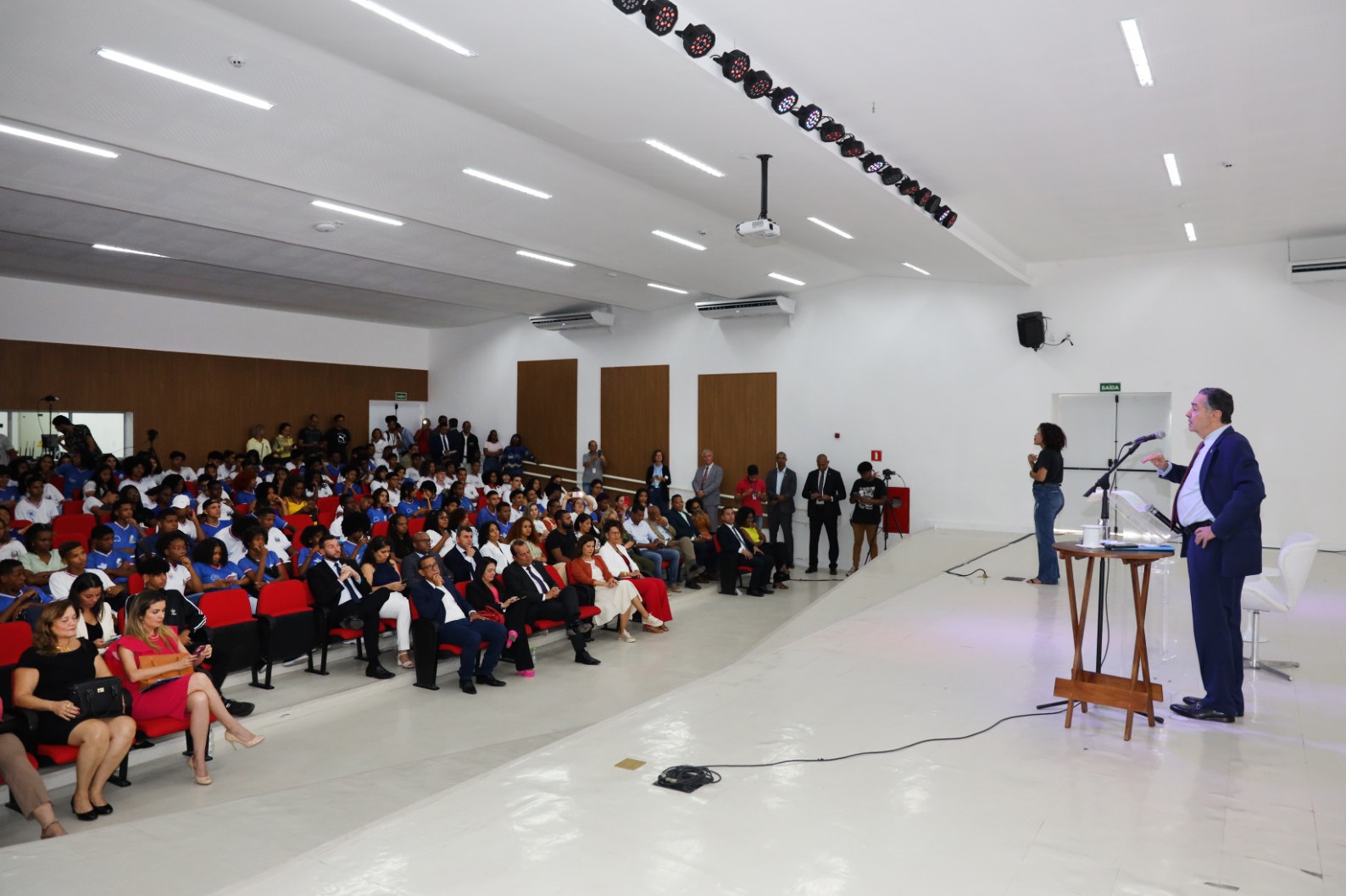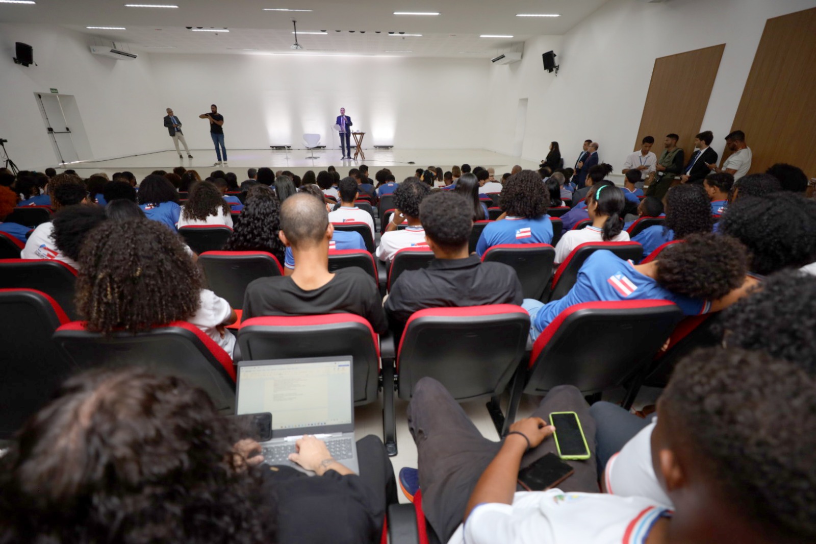 A segunda-feira (4) começou com uma atividade diferenciada no Centro Estadual de Educação Profissional em Tecnologia, Informação e Comunicação (Ceep-TIC), em Lauro de Freitas. O presidente do Supremo Tribunal Federal (STF), ministro Roberto Barroso, deu uma aula motivacional para cerca de 250 estudantes, professores e funcionários de quatro unidades escolares da rede estadual de Salvador e Lauro de Freitas. O governador da Bahia em exercício, Geraldo Júnior, prestigiou o evento, dentre outras autoridades.