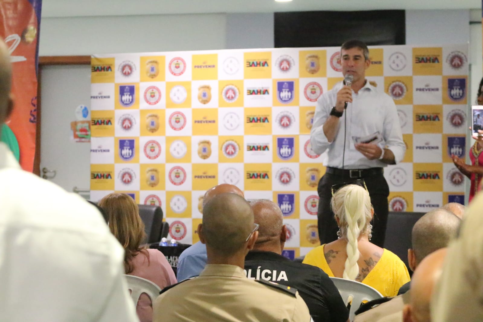 Cuidar da saúde dos policiais e bombeiros que atuarão nas festas populares é o principal objetivo da Caravana Itinerante Biopsicossocial, lançada pela Secretaria da Segurança Pública (SSP-BA), na manhã desta terça-feira (16), através da Superintendência de Prevenção à Violência (Sprev). A solenidade contou com a participação do vice-governador do Estado, Geraldo Júnior, do secretário estadual da Segurança Pública, Marcelo Werner, do comandante-geral da Polícia Militar (PMBA), coronel Paulo Coutinho, da diretora do Departamento de Polícia Técnica, perita criminal Ana Cecília Bandeira, do comandante-geral do Corpo de Bombeiros, coronel Adson Marchesini, e da superintendente de Prevenção à Violência, tenente-coronela Denice Santiago.