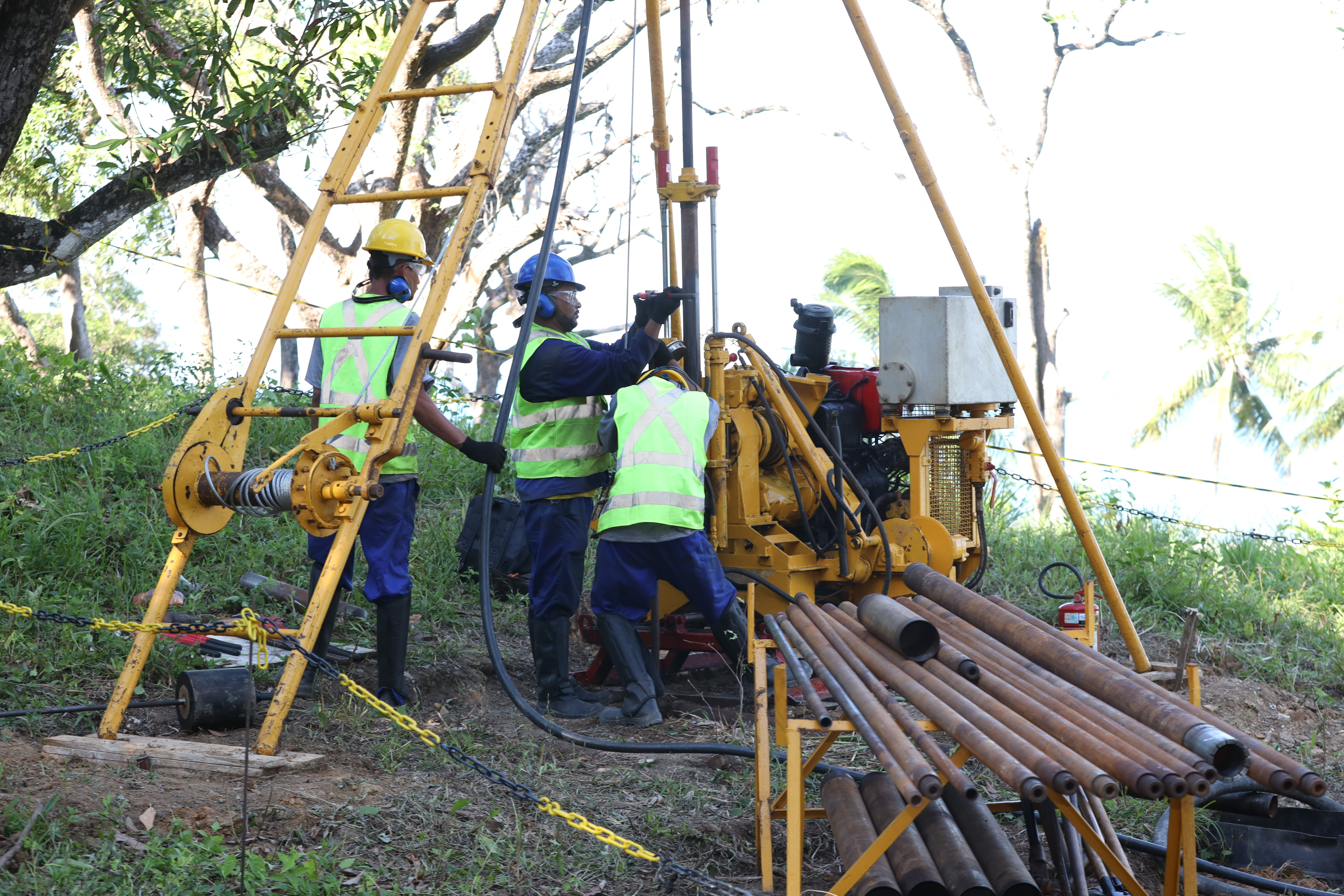 Com uma perfuração feita em terra no município de Vera Cruz nesta quarta-feira (31), a Concessionária Ponte Salvador-Itaparica deu início aos trabalhos de sondagem, fase fundamental para compreender as características do solo e definir a fundação da ponte. Nesta etapa em terra, uma máquina perfuratriz é utilizada para coletar amostras do terreno no local exato onde estarão cada um dos pilares. Posteriormente, essas amostras são enviadas para laboratório onde são feitas as análises detalhadas do material coletado. A sondagem em terra envolve duas perfurações em Vera Cruz e outra em Salvador.