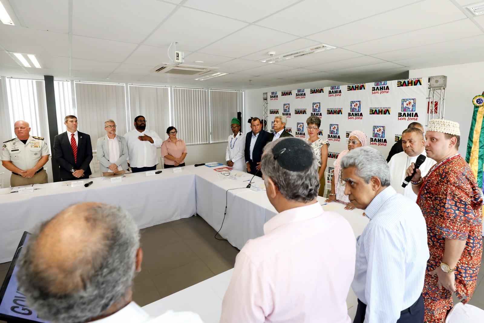 Líderes religiosos de candomblé, umbanda, espiritismo, muçulmanos e israelitas foram alguns dos que estiveram com o governador Jerônimo Rodrigues na tarde desta quarta-feira (24), no Centro Administrativo, em Salvador, para discutir a criação da Delegacia Especializada de Combate à Intolerância Religiosa (Decradi). Participaram do encontro secretários de estado e representantes da Segurança Pública da Bahia (SSP-BA), que estão no planejamento de ações para a delegacia e de outras políticas de prevenção e combate aos crimes de mesmo gênero. Na ocasião, também foram apresentadas políticas estaduais que já foram implementadas e dados registrados no último ano.