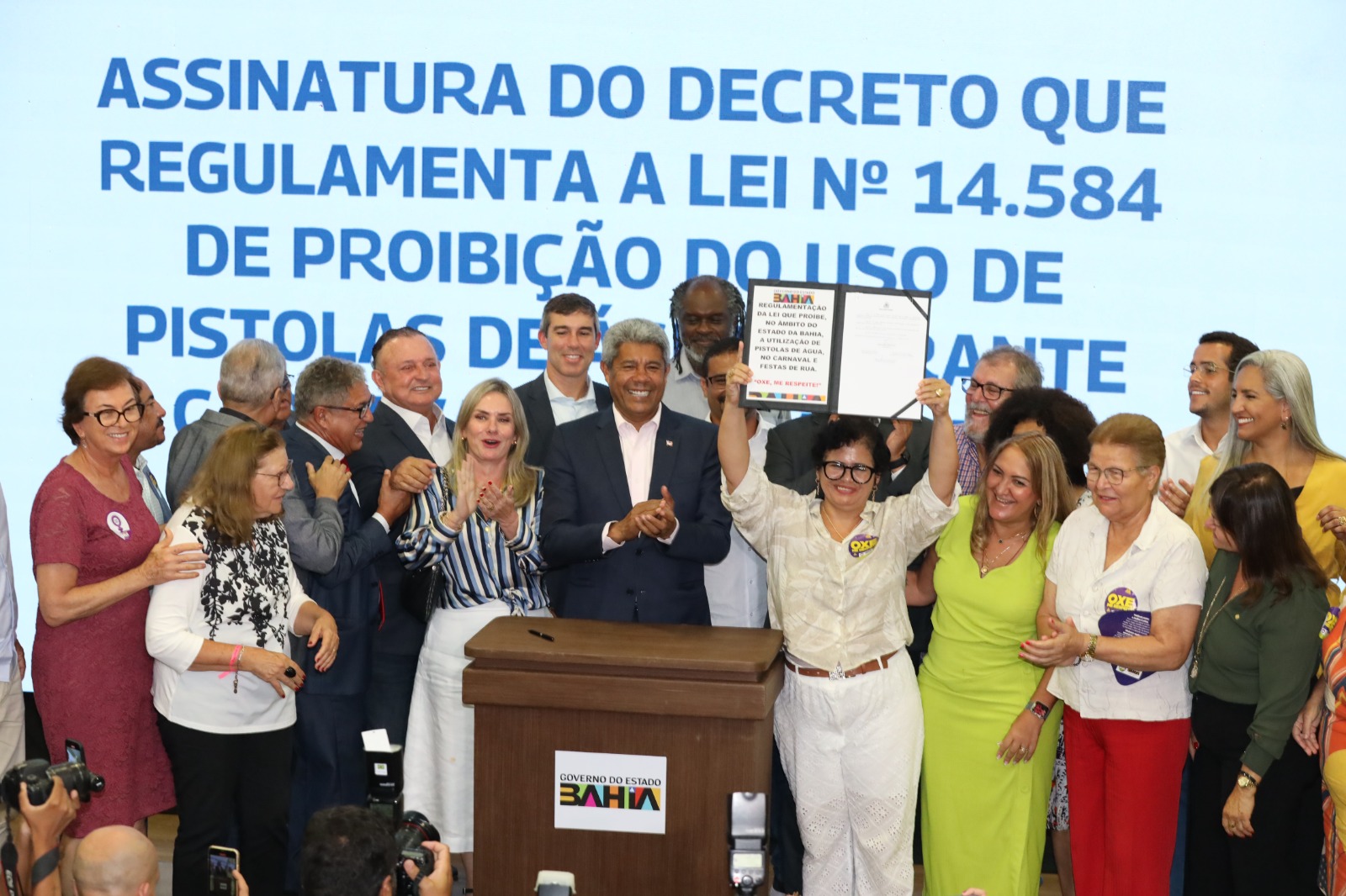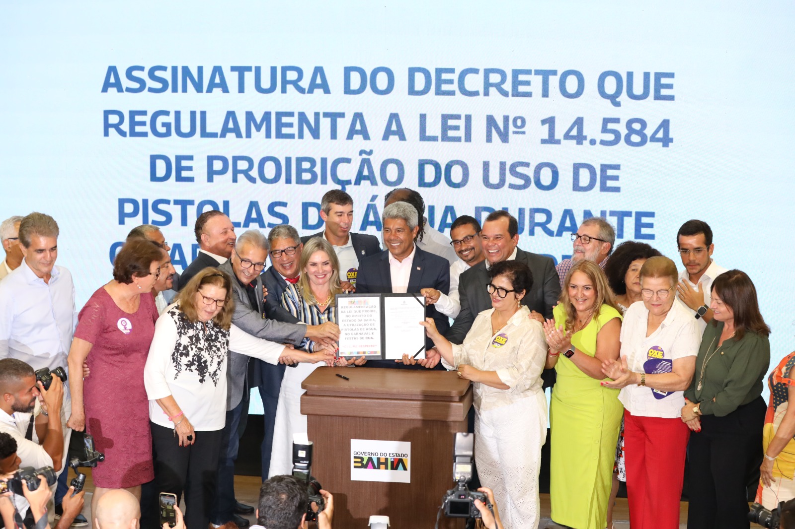 A cultura das pistolas de água está com os dias contados no Carnaval da Bahia. Isso, porque foi regulamentada, nesta segunda-feira (29), a lei nº 14.584, através da Secretaria de Políticas para as Mulheres (SPM), que proíbe a utilização de “pistolas de água” e similares durante a folia e em outras festas populares de rua em todo o estado. O evento que oficializou a lei aconteceu no Centro Administrativo da Bahia, em Salvador, com a presença do governador Jerônimo Rodrigues, do coordenador-geral do Carnaval, Geraldo Júnior, e de secretários de estado.