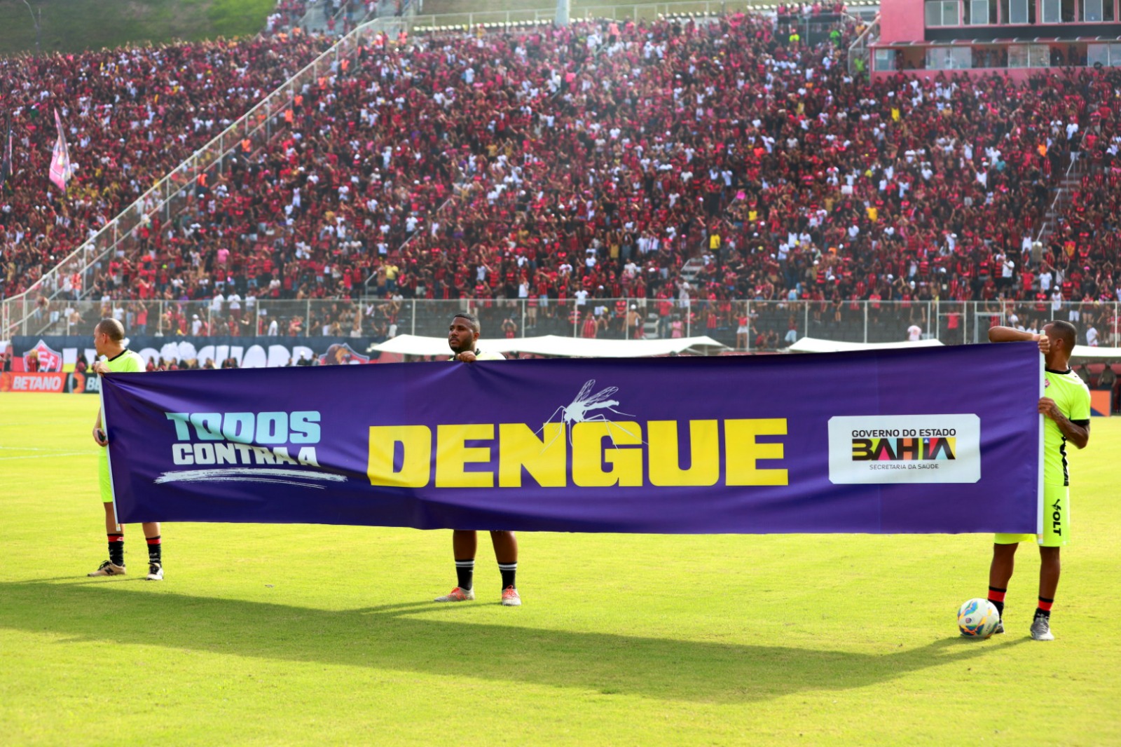 Durante o clássico BaVi, realizado no Estádio Manoel Barradas - Barradão, neste domingo (18), em partida válida pelo Campeonato Baiano, o Governo do Estado, por meio da Secretaria da Saúde (Sesab), promoveu ação de conscientização para o combate à dengue. A iniciativa faz parte do plano estadual de contingência à epidemia da doença causada pelo aedes aegypti.