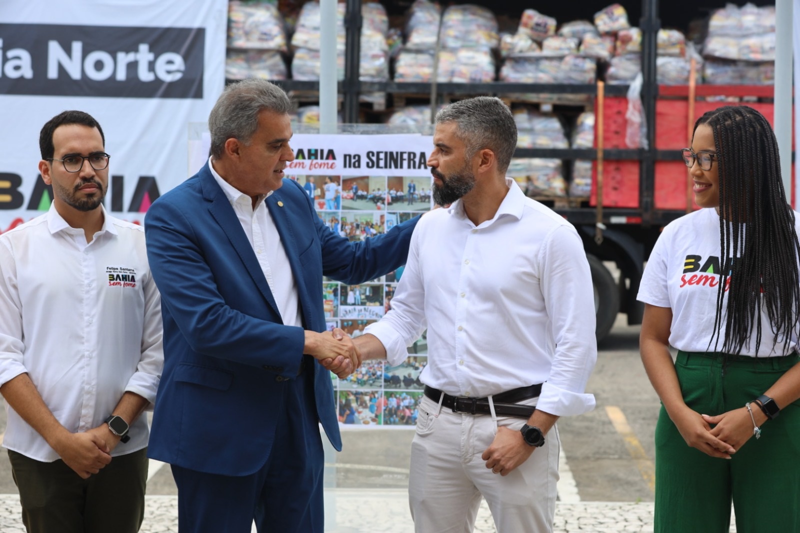 O Programa Bahia Sem Fome recebeu uma doação de 25 toneladas de alimentos entregues pela Concessionária Bahia Norte (CBN), empresa responsável pela administração das rodovias do Sistema BA-093, que interligam municípios da Região Metropolitana de Salvador (RMS). O ato solidário foi realizado na manhã desta quinta-feira (29), na sede da Secretaria de Infraestrutura do Estado (Seinfra), no Centro Administrativo (CAB), na capital baiana. No total, a Bahia Norte anunciou a doação de 150 toneladas de alimentos ao programa de combate a insegurança alimentar na Bahia, implantado no governo Jerônimo Rodrigues.
