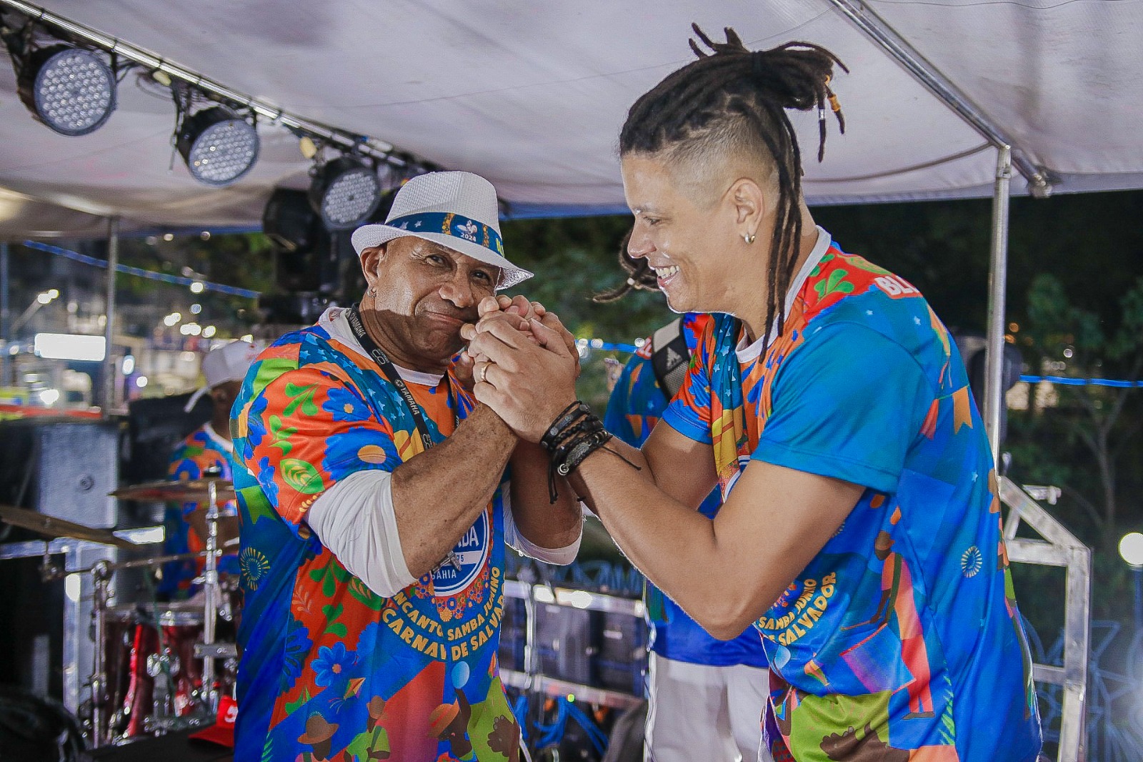 “Hoje é dia de alegria. Este ano, estamos inovando no Carnaval de Salvador, com o tema samba junino, que é a nossa cara, nossa realidade. Tudo, aqui, começou pelos sambas juninos, de rua em rua, porta em porta, no São João. E, hoje, estamos homenageando essas pessoas no Carnaval”, destacou o diretor da ala de canto do bloco, Valdélio França.