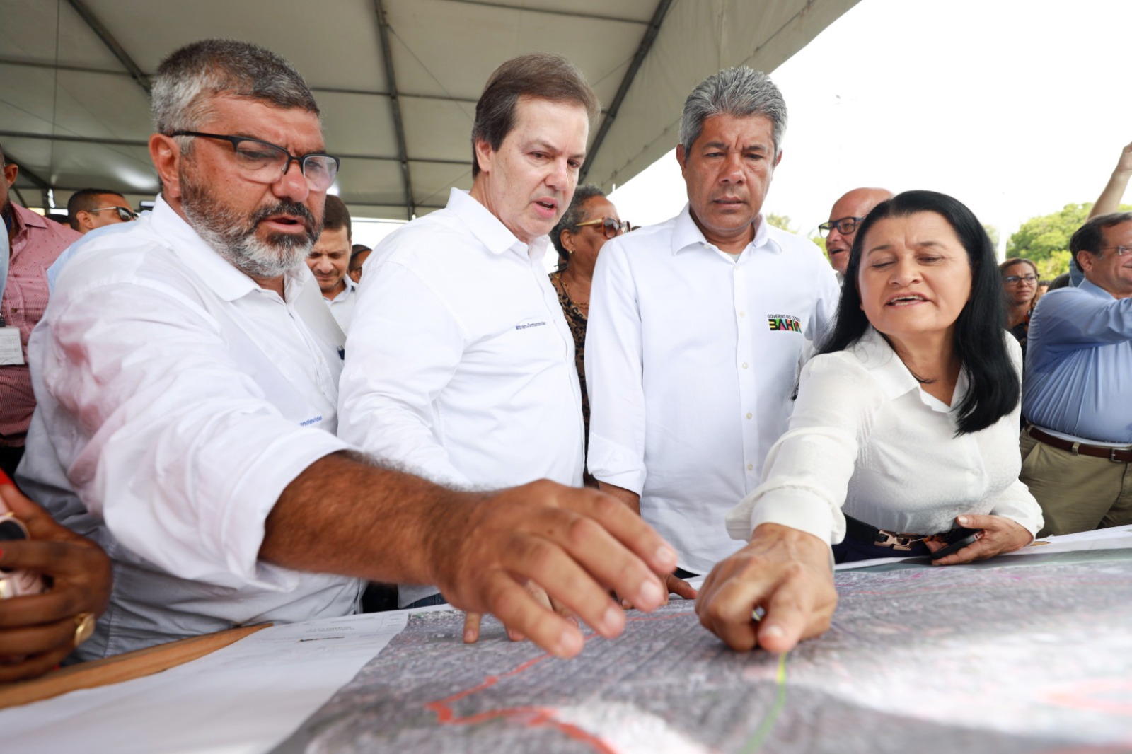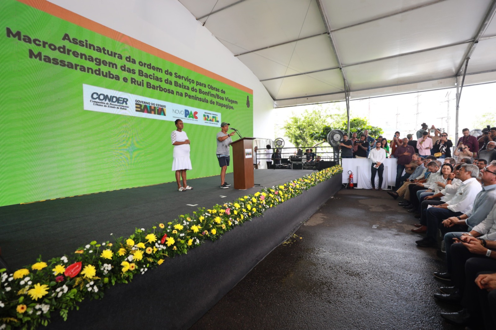 A primeira ordem de serviço do Plano de Aceleração do Crescimento (PAC) na Bahia foi assinada pelo governador Jerônimo Rodrigues, durante evento realizado no Largo de Roma, em Salvador, nesta segunda-feira (5). No ato, o governador autorizou as obras de micro e macrodrenagem nas Bacias da Baixa do Bonfim, Boa Viagem e Massaranduba. O evento contou com a participação de secretários de Estado e outras autoridades, dentre elas, a secretária de Desenvolvimento Urbano, Jusmari Oliveira, e o presidente da Companhia de Desenvolvimento Urbano do Estado da Bahia (Conder), José Trindade.