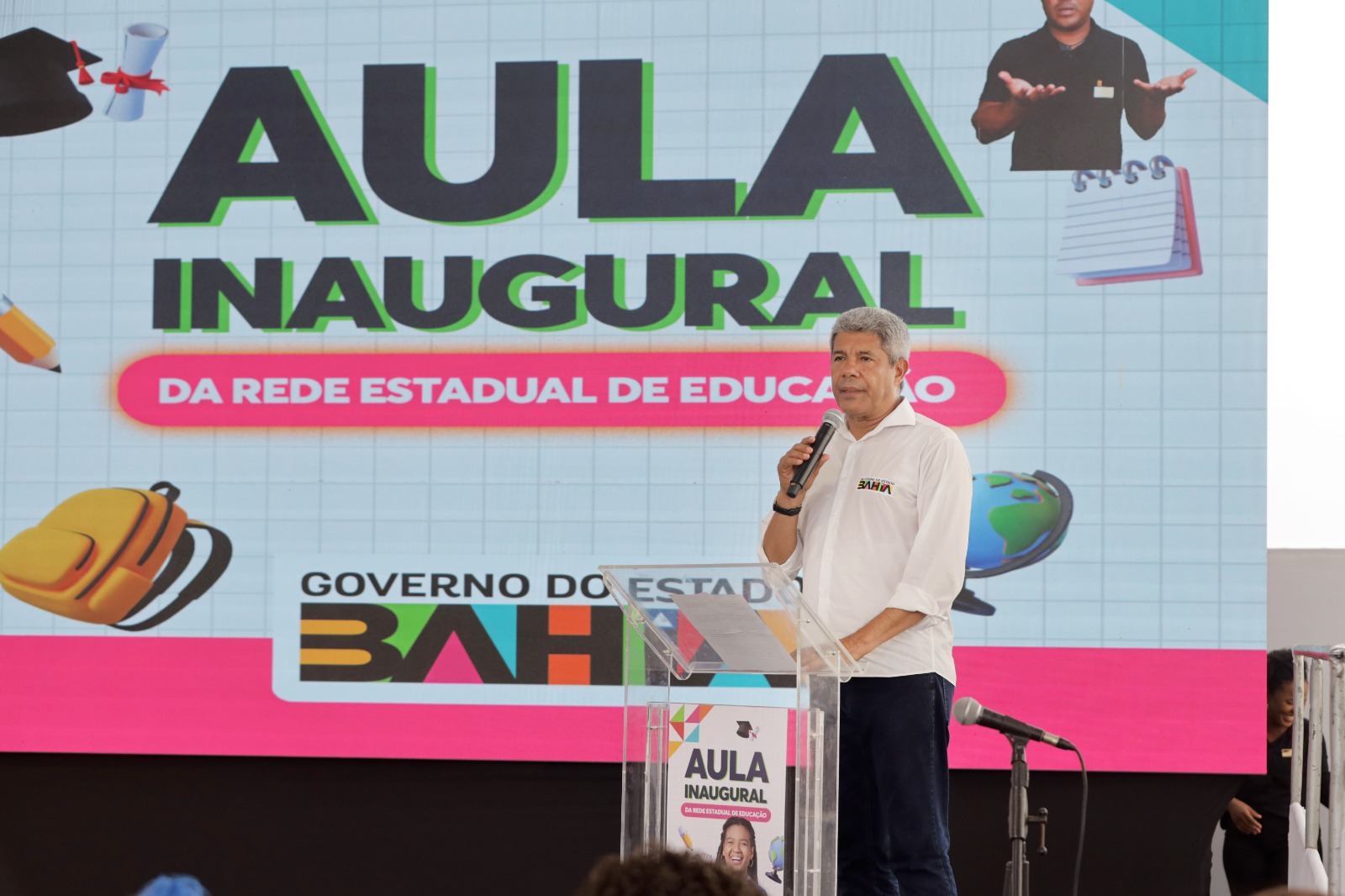 “Nós faremos entregas de escolas como estas em toda Bahia. São mais de 20 escolas prontas. Amanhã, por exemplo, eu estarei em Itaparica, entregando escolas. Esta semana vai ser toda assim. Vamos cortar o Estado para poder fazer novas entregas de escola com esse perfil. Nós vamos anunciar, em março, novos investimentos em escolas. Escolas novas, ampliação, modernização. Com quadra, com laboratório, campos, com site, com restaurante. Possivelmente, o PAC [Programa de Aceleração do Crescimento] da Educação ultrapassará um bilhão de reais em novas escolas”, adianta o governador, acrescentando: “hoje é um dia especial. Em cada canto da Bahia, hoje, nós vamos começar a colher aquilo que nós preparamos durante todas as férias, para receber os estudantes, para acolher seus familiares, para compartilhar com a comunidade atividades culturais, esportivas, de ciência. E a nossa mensagem é que o ano letivo começa com a missão de acolhimento, de responsabilidade, mas de aprendizagem. Nós vamos superar, com fé em Deus, na Bahia, o analfabetismo, nós vamos trabalhar com jovens e adultos, vamos fortalecer a parceria. Nós haveremos de fazer um ano letivo de 200 dias, com muita firmeza, com muito cuidado e com muito zelo. É um ano letivo de cuidado”.