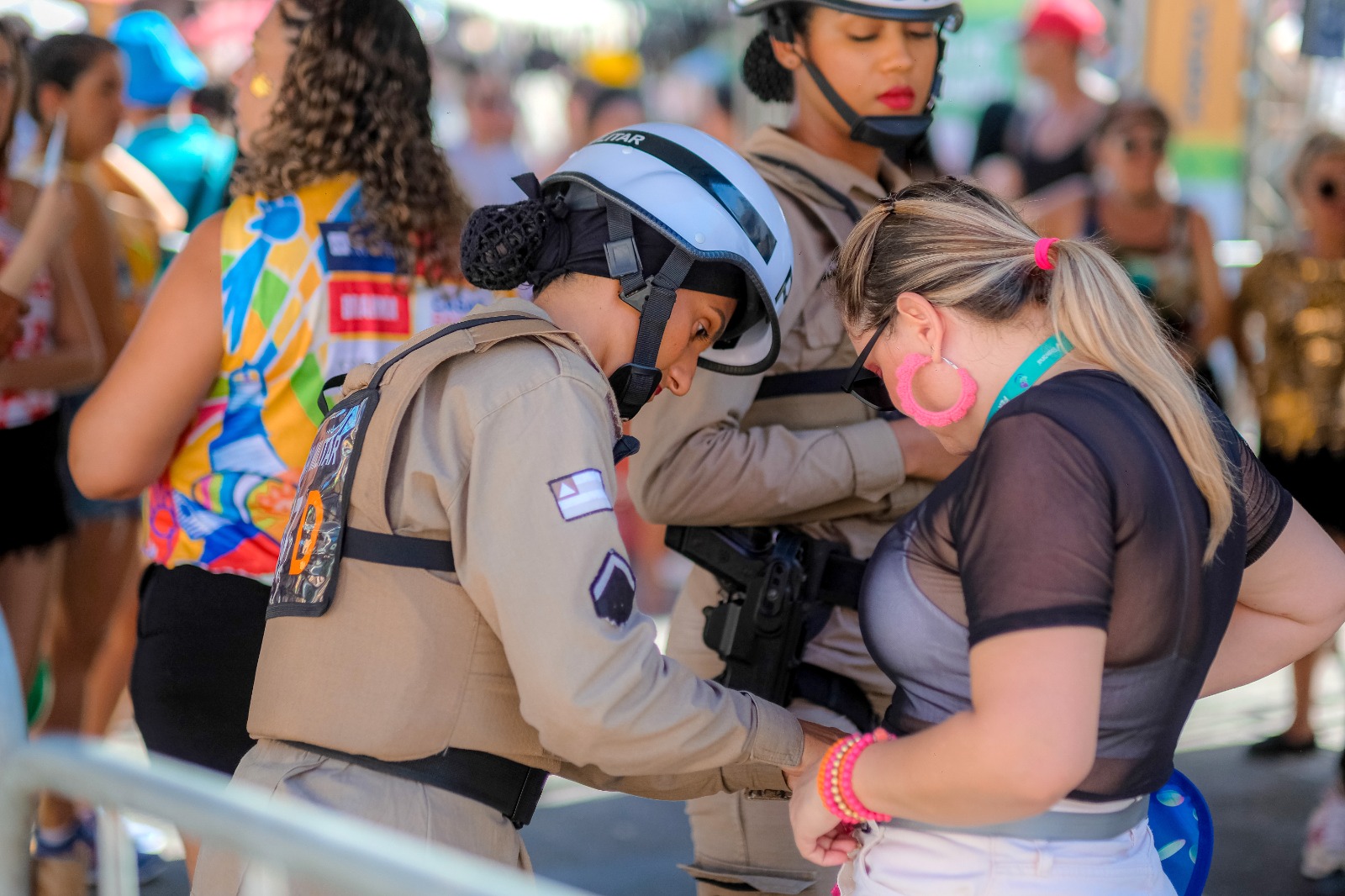 Durante o carnaval em Salvador, a Polícia Militar intensificou suas medidas de segurança para garantir o bem-estar dos foliões. Centenas de policiais militares foram destacados para realizar revistas nos portões de entrada dos circuitos da festa, como parte dos esforços para combater a violência.
