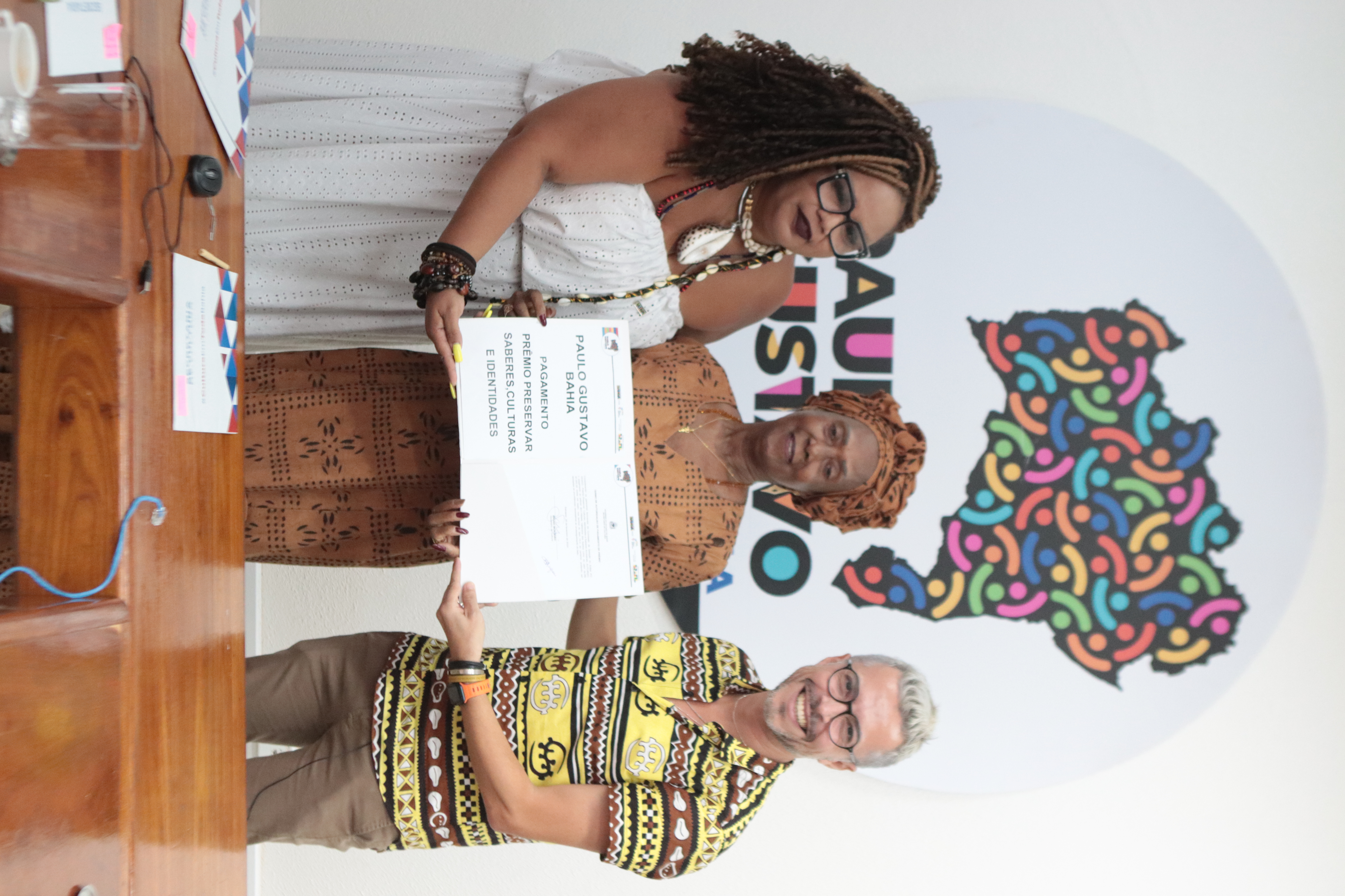 Bruno abriu o ato comemorando esse momento tão importante e a possibilidade de reconhecer a trajetória e as ações culturais de agentes e instituições que possuem um legado ancestral em comunidades baianas. “Tomamos uma decisão de começar a fazer os pagamentos dos editais da PGBA pelos prêmios, pois, para o Governo do Estado, é muito relevante reconhecermos o legado de tantas e tantos agentes da cultura que carregam a nossa ancestralidade e mantém viva e pulsante a nossa tradição cultural, que é tão rica, tão diversa e tão identitária”, afirmou o secretário.