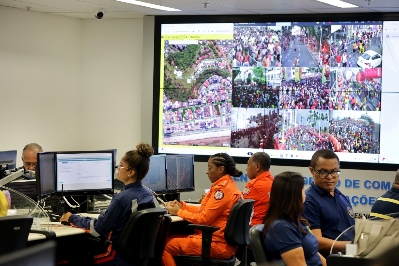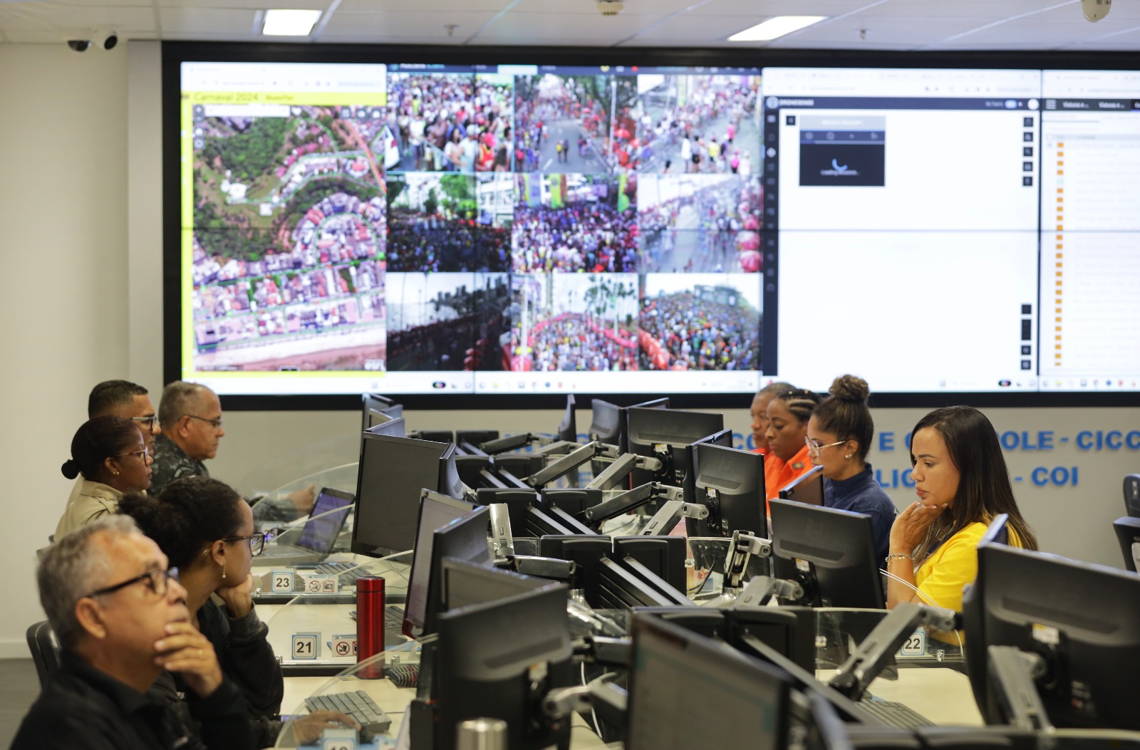 No Centro, 44 instituições estaduais, federais e municipais, além de empresas privadas compartilham informações e promovem medidas de forma integrada. A proposta é diminuir o tempo de resposta para as ocorrências e promover mais eficiência durante o Carnaval 2024, como explicou o superintendente de Telecomunicações da SSP, Major PM Moisés Travessa. "Aqui temos todo o aparato tecnológico que existe na SSP, como a visualização de todas as câmeras e informações entre os órgãos. Havendo algum incidente, cada um deles, de acordo com a sua competência, vai atuar, visando sanar o mais rápido possível".