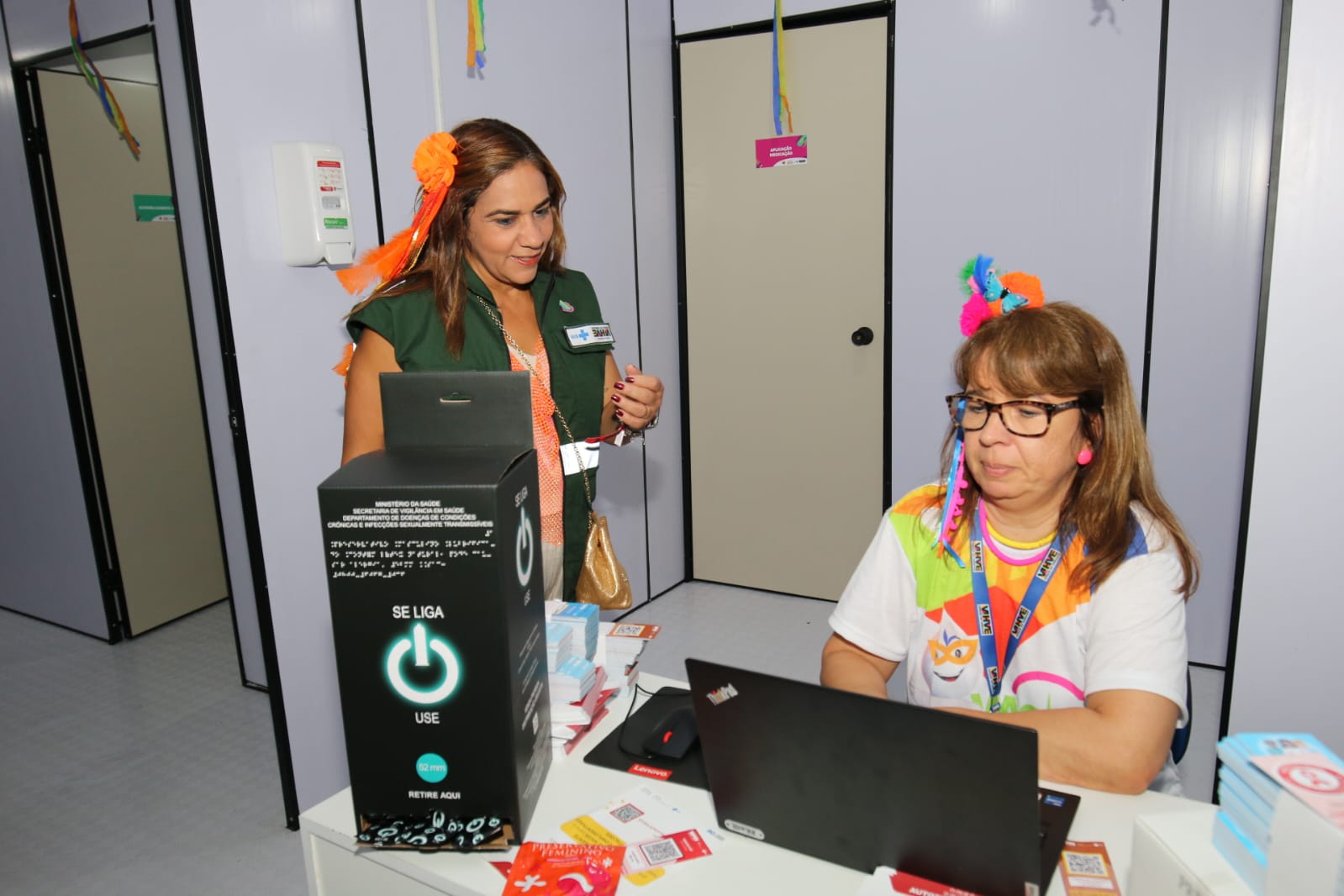 Além de realizarem os testes de IST, as equipes da Sesab distribuíram 129.600 preservativos no primeiro dia de Carnaval, divididos entre disponibilizados nos estandes e distribuídos em ações nos circuitos e em pontos turísticos.