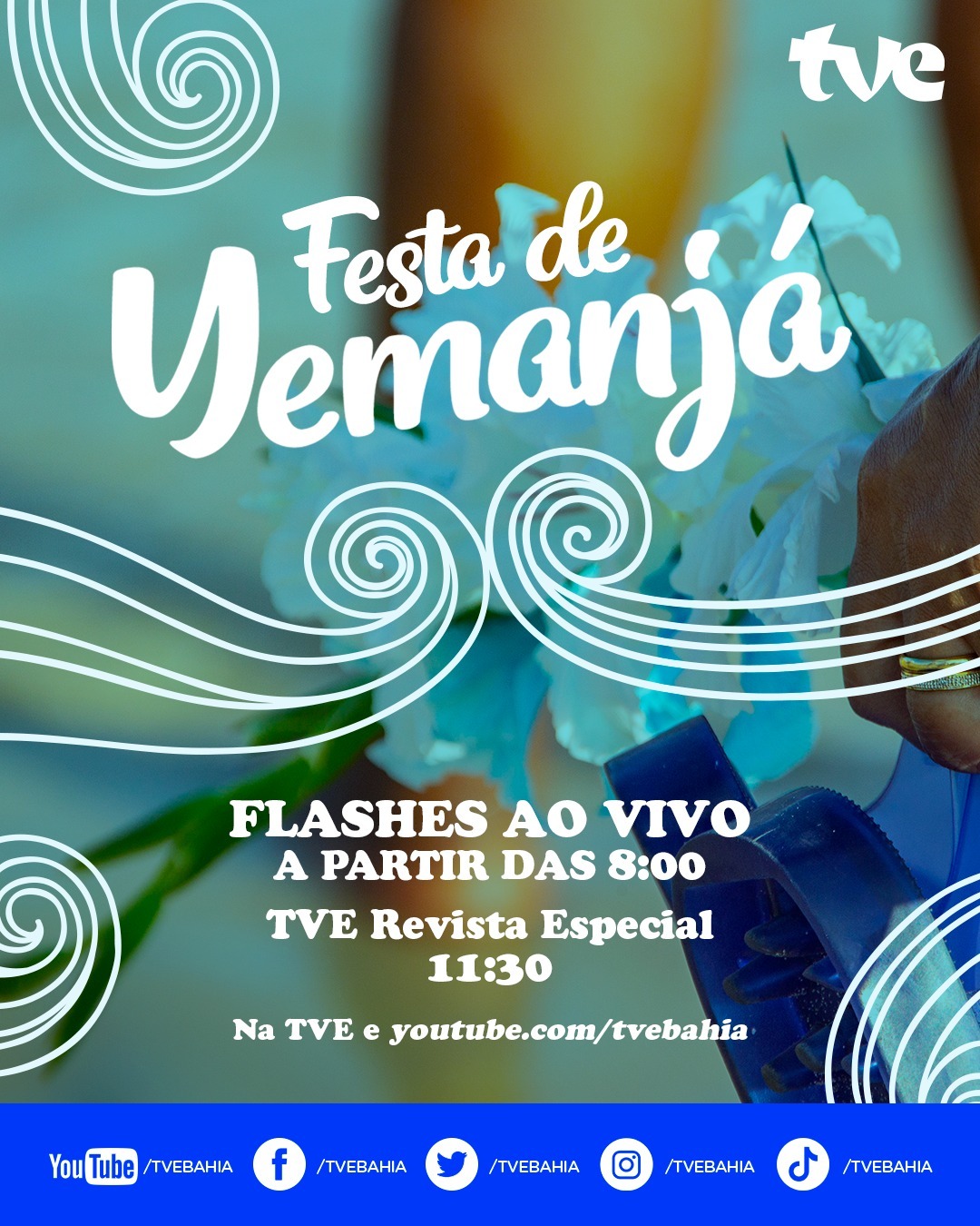 A TVE mostra a tradicional festa de Iemanjá nesta sexta-feira (2), direto do Rio Vermelho na capital baiana. A cobertura especial começa às 8h, com entradas ao vivo na programação, e no TVE Revista, a partir das 11h30. A transmissão retorna às 15h para mostrar a entrega dos presentes no mar.