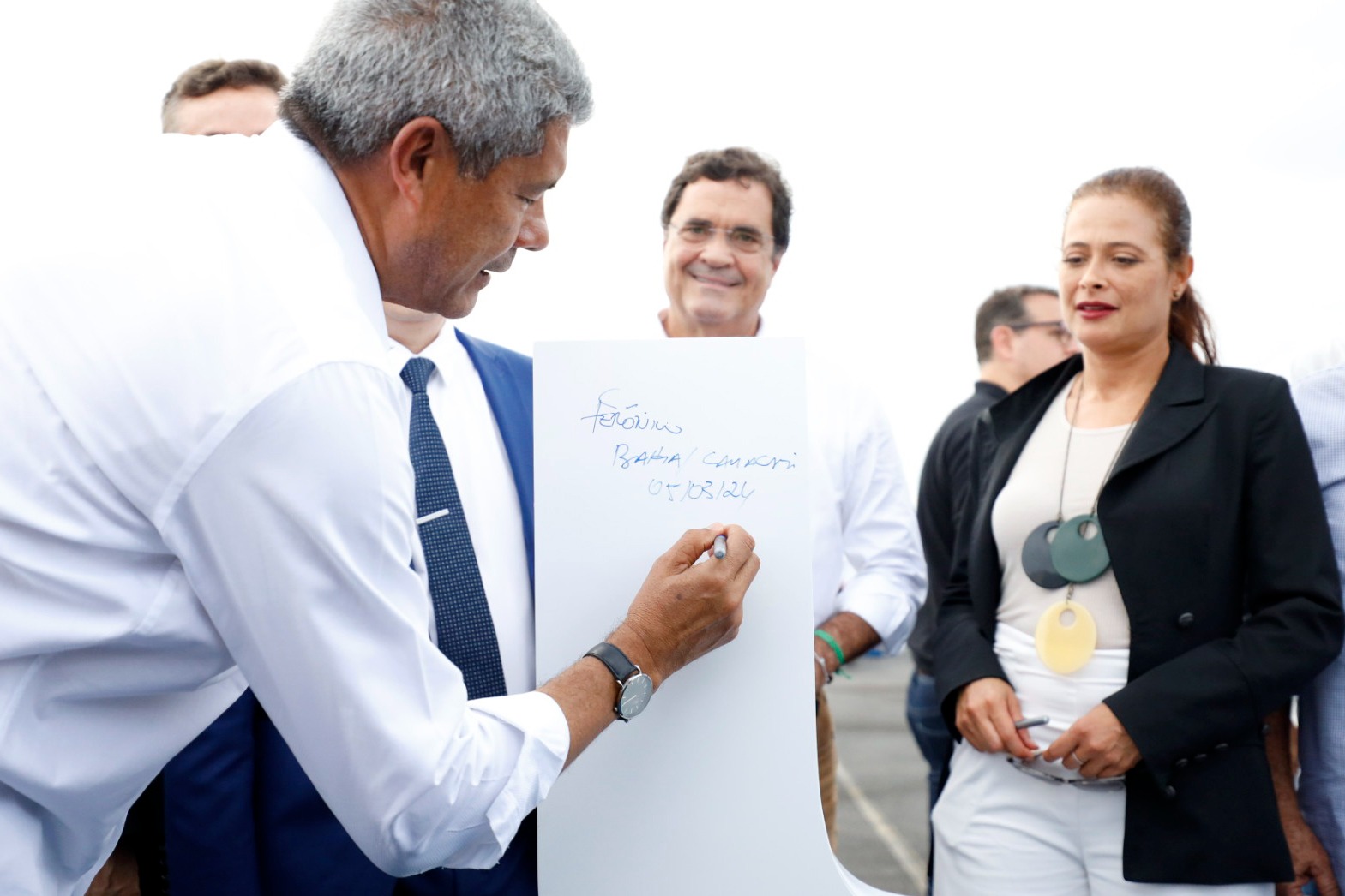 O governador Jerônimo Rodrigues e os secretários estaduais da Fazenda (Sefaz) e de Desenvolvimento Econômico (SDE), Manoel Vitório e Ângelo Almeida, respectivamente, participaram da cerimônia e assinaram contrato de compra e venda do imóvel, pertencente ao Estado, que concederá, a partir da data, o uso da área pela fabricante. Na celebração também estiveram presentes o presidente da BYD Brasil, Tyler Li e Alexandre Baldy, conselheiro especial da companhia