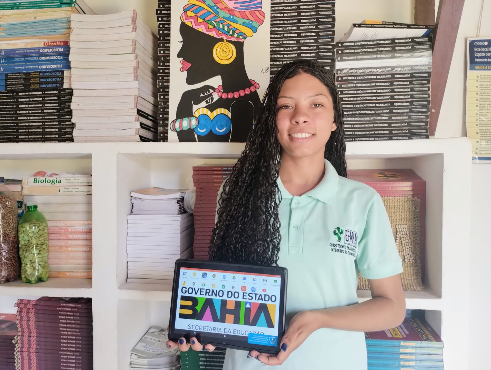No município de Inhambupe, a estudante Lavínia Rodrigues, 16, que cursa o 2º do curso técnico em Agropecuária integrado ao Ensino Médio, na Escola Família Agrícola da Região de Alagoinhas (Efara), ficou contente ao receber o seu equipamento. “A utilização desse tablet vai nos ajudar muito, pois podemos fazer pesquisas, assistir a videoaulas e fazer atividades com os aplicativos instalados. Uma delas é o nosso Projeto Profissional do Jovem (PPJ), que é necessário para a conclusão do curso”, comentou.