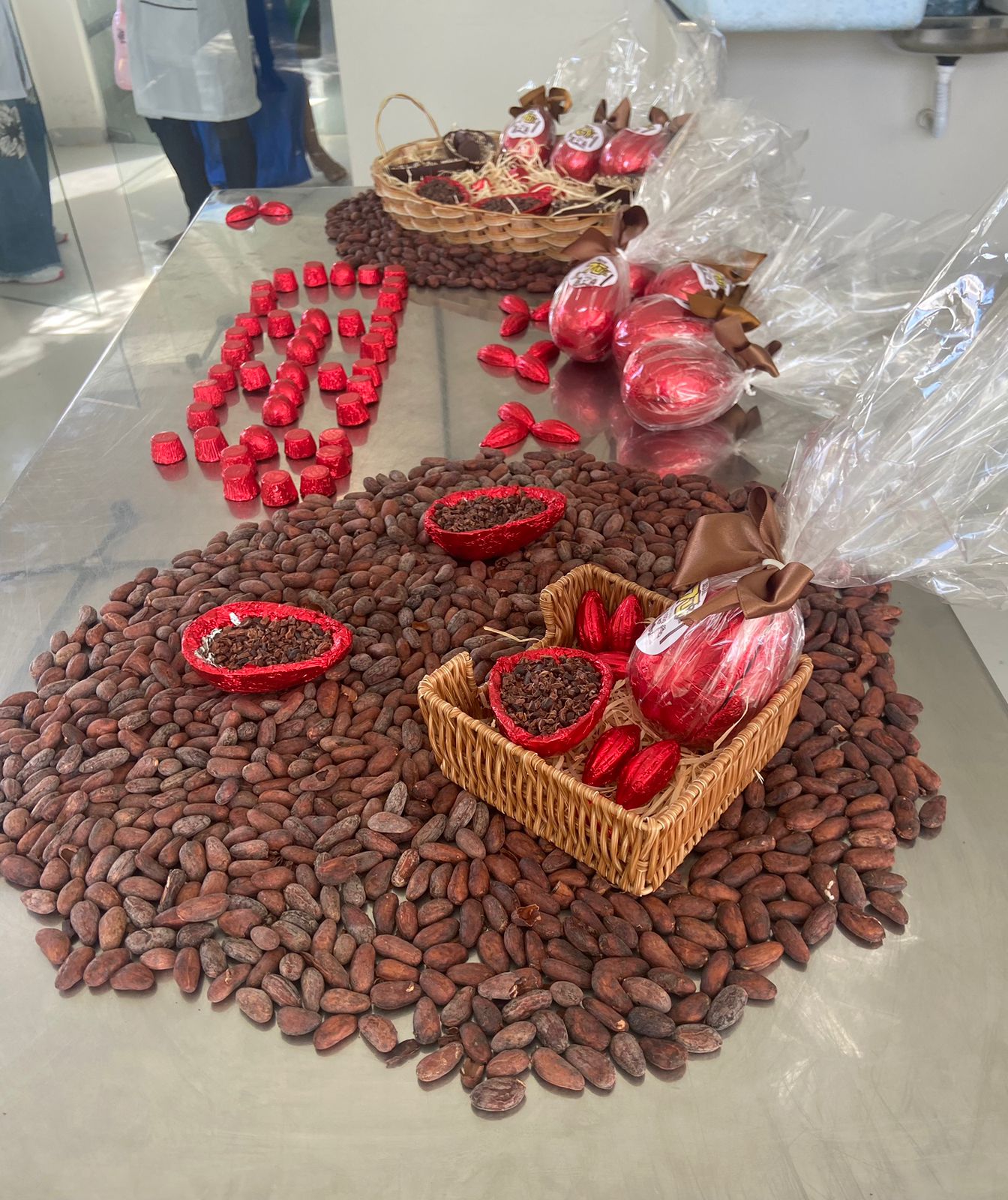 Em 2024, estão sendo produzidos cerca de cinco mil bombons e 2,5 mil ovos nas versões 45%, 56%, 61% e 70% cacau, que serão entregues na próxima semana nas escolas infantis Cantinho do Recreio e Nova Jerusalém, na zona norte de Ilhéus, além de uma escola indígena Tupinambá, em Olivença.