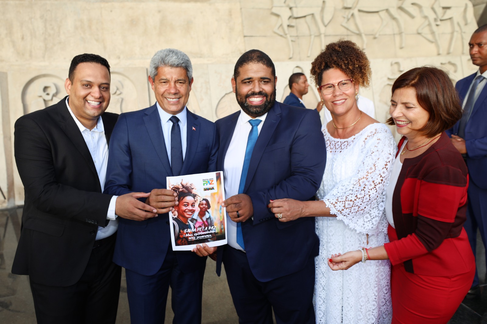 O governador Jerônimo Rodrigues entregou, pessoalmente, nesta quarta-feira (13), na Assembleia Legislativa da Bahia (Alba), o Projeto de Lei que propõe a instituição do Bahia Pela Paz, programa de Estado que faz parte de uma nova política de segurança pública, fomentando a visão de cultura de paz e atuando na promoção da cidadania, da valorização da família e dos direitos humanos. Executado de forma transversal, o programa será desenvolvido em comunidades da capital e do interior do estado.
