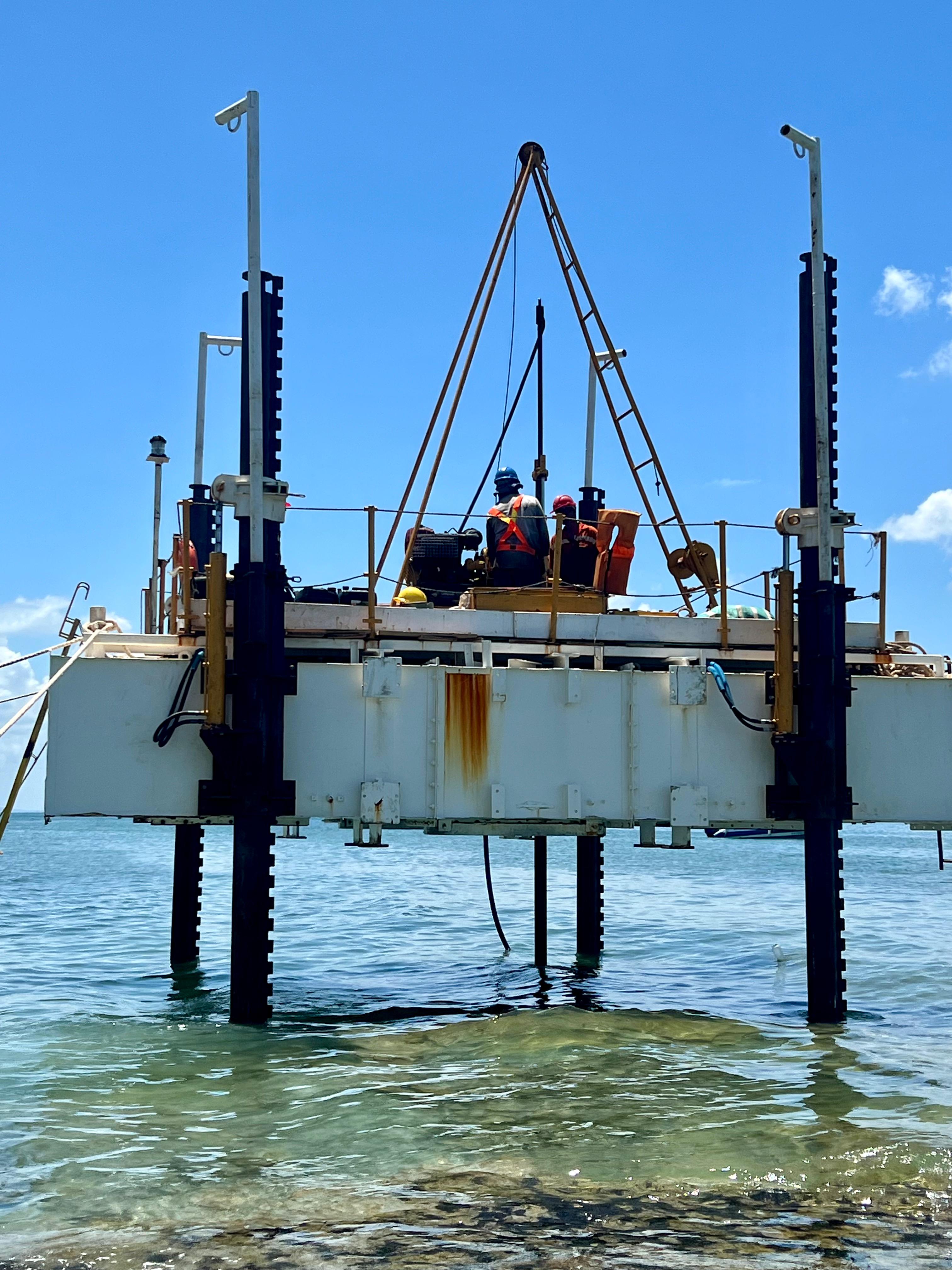 Na lista, estão três perfuratrizes especiais com sistema de compensação de ondas, tecnologia chinesa para executar o serviço no mar durante o inverno, período em que podem ocorrer condições climatológicas adversas, garantindo a estabilização das balsas onde estarão as plataformas de trabalho. Também aportaram no estado uma cabine de operação, torre de operação, guincho, gerador e um laboratório para análise geotécnica do material que será coletado no mar.