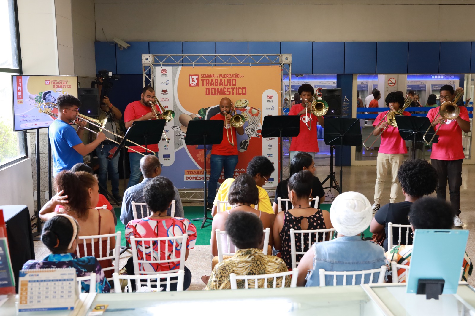 Em comemoração ao Dia Nacional da Trabalhador Doméstico, celebrado neste sábado, 27 de abril, a Secretaria do Trabalho, Emprego, Renda e Esporte da Bahia (Setre) realiza, até este sábado (27), a 13ª Semana de Valorização do Trabalho Doméstico, que acontece no piso L1 do Shopping Piedade, no Centro de Salvador. Nesta sexta-feira (26), a abertura do evento trouxe uma apresentação do Núcleos Estaduais de Orquestras Juvenis e Infantis da Bahia (Neojiba), além de palestras e outras intervenções culturais.