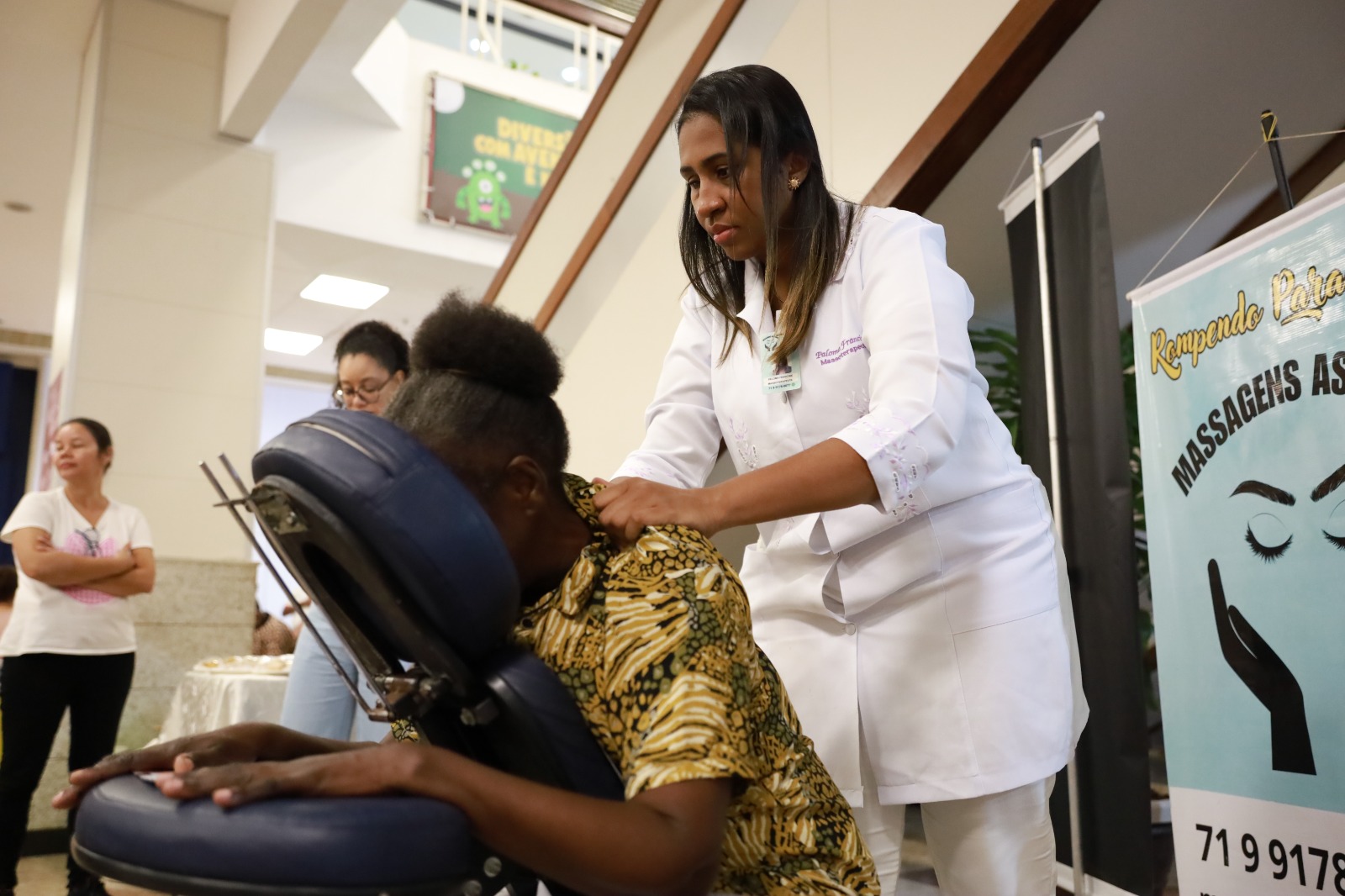 A dona de casa e ex-empregada doméstica Maria Araújo aproveitou para relaxar e fazer uma massagem: “Estava com a pressão alta e, agora, estou me sentindo ótima”, contou ela.