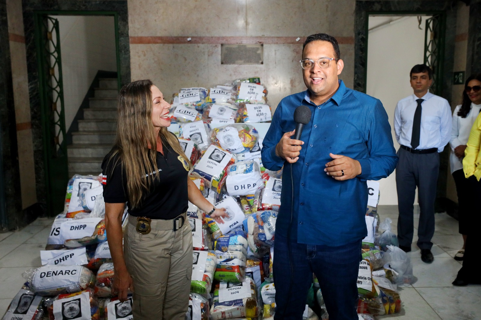 O Programa Bahia Sem Fome, que acaba de completar um ano, recebeu a doação de aproximadamente cinco toneladas de alimentos da Polícia Civil do Estado da Bahia (PC-BA), órgão vinculado à Secretaria de Segurança Pública. O ato solidário, realizado na tarde desta quarta-feira (10), no edifício-sede do órgão, na Piedade, mobilizou delegados, escrivães e investigadores. As doações terão como destino, pessoas em situação de vulnerabilidade social de diversas instituições de acolhimento da capital e Região Metropolitana de Salvador.