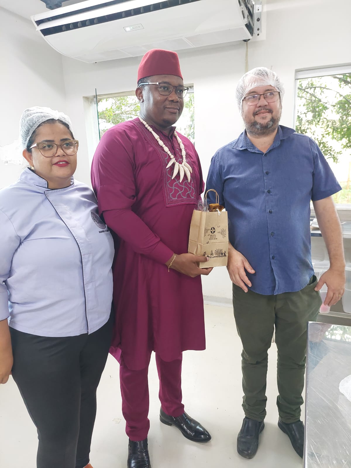 O ministro embaixador da República de Camarões no Brasil, Martial Tchenzette, acompanhado de uma comitiva composta de representantes da Câmara de Comércio Brasil-Camarões, e dos setores de Educação, Turismo e da Cadeia Produtiva do Cacau do país africano, visitaram na tarde desta quarta-feira (17) o Centro Estadual de Educação Profissional Nelson Schaun, Ceep do Chocolate, em Ilhéus.