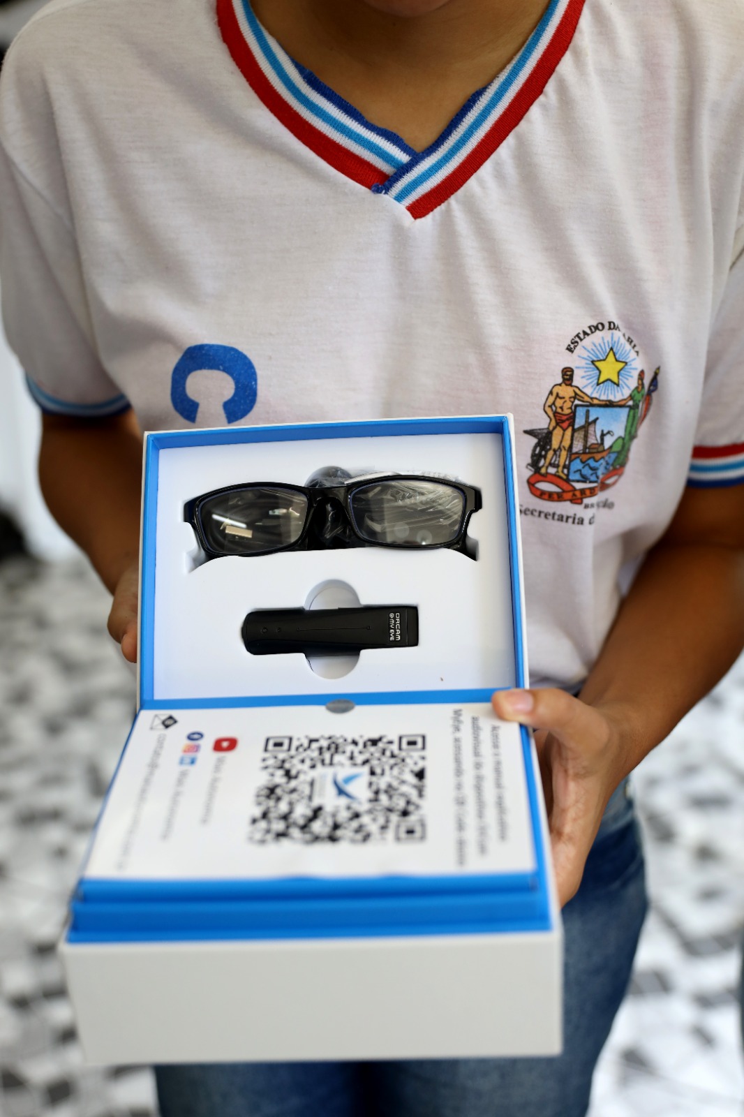 Entrega de 209 novos óculos inteligentes amplia autonomia de estudantes da rede estadual com deficiência visual.