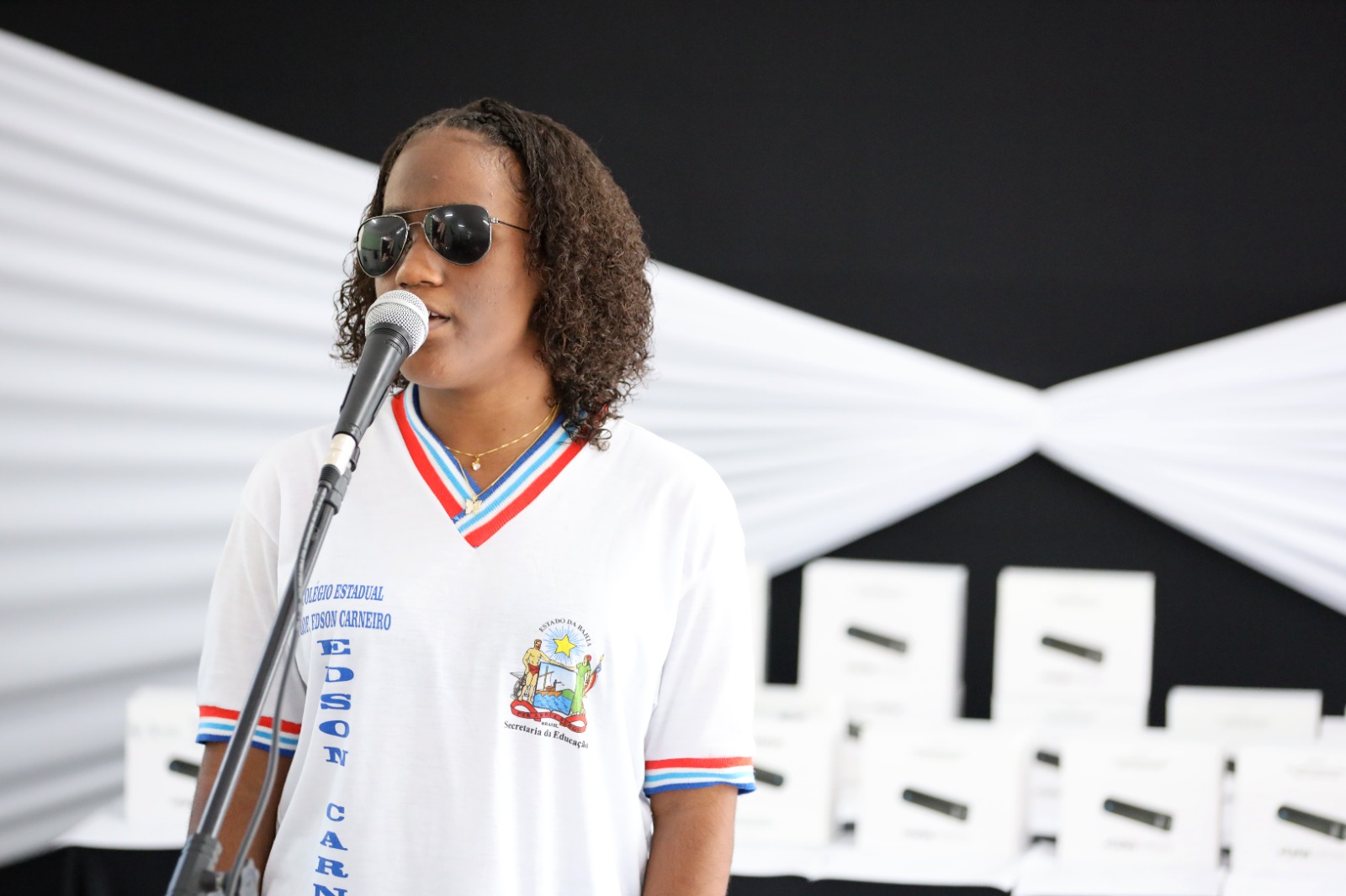 A estudante do 3º ano do Ensino Médio do Colégio Édson Carneiro, Sara Victória Santos, recebeu seu equipamento e comemorou a novidade. “Minha expectativa está altíssima. Eu nunca tive. Sempre eu espero alguém sentar do meu lado e ditar o que está no quadro para eu escrever. E eu acho que com óculos isso vai facilitar muito”, disse a jovem que pretende cursar pedagogia ou música ao concluir o Ensino Médio.